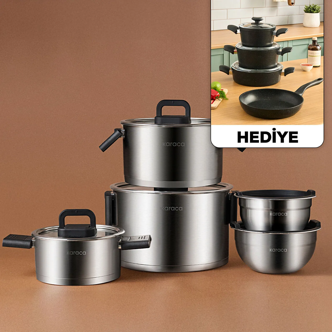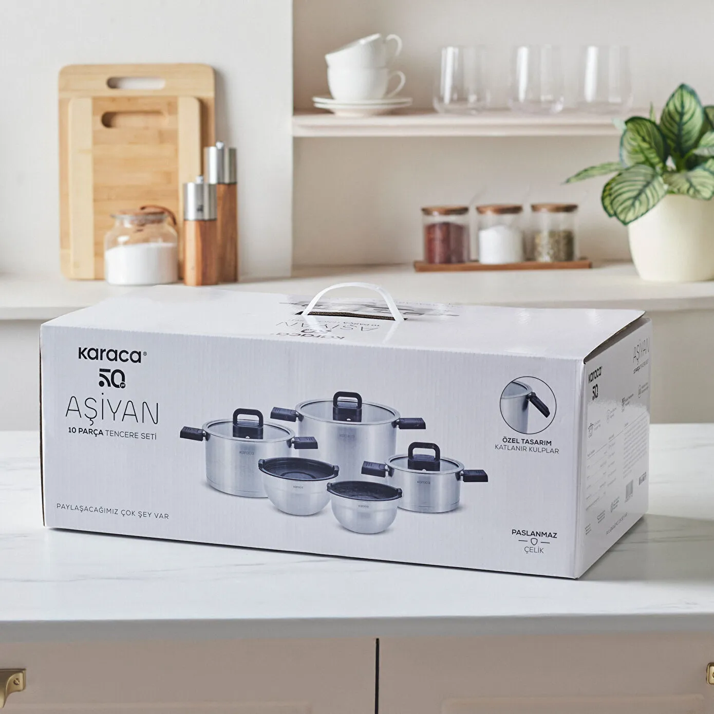 Karaca Aşiyan Katlanabilir Kulplu 10 Parça Çelik Tencere Seti