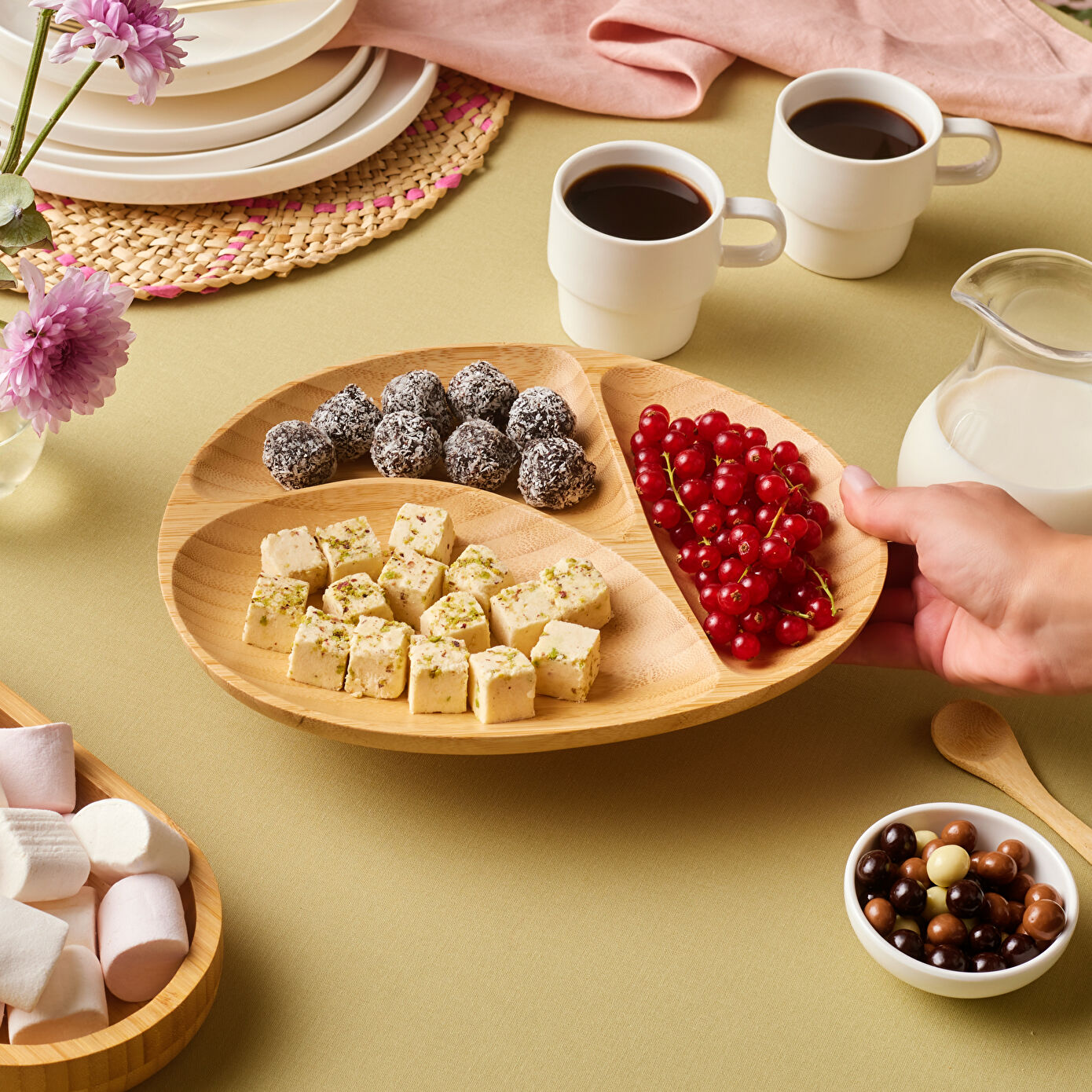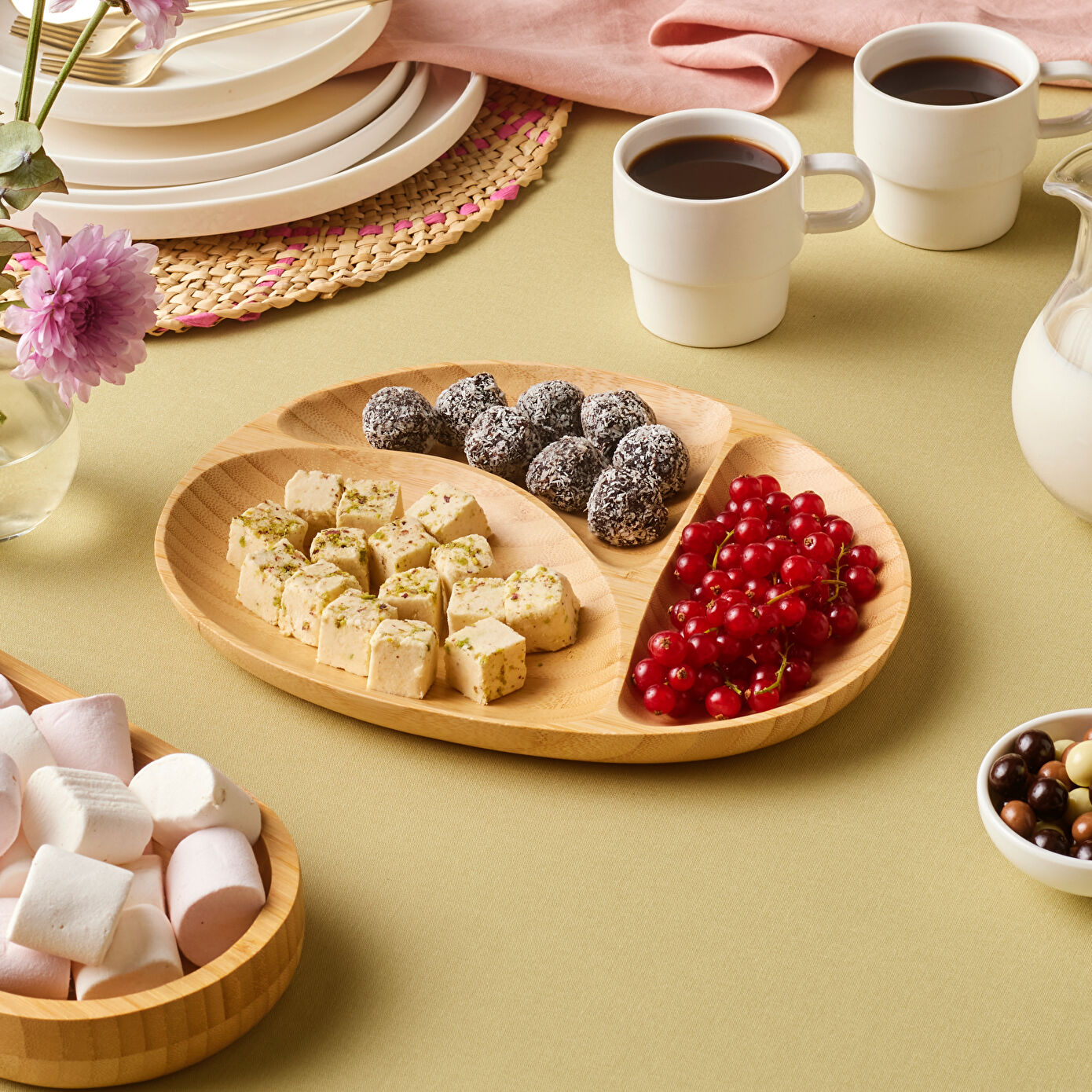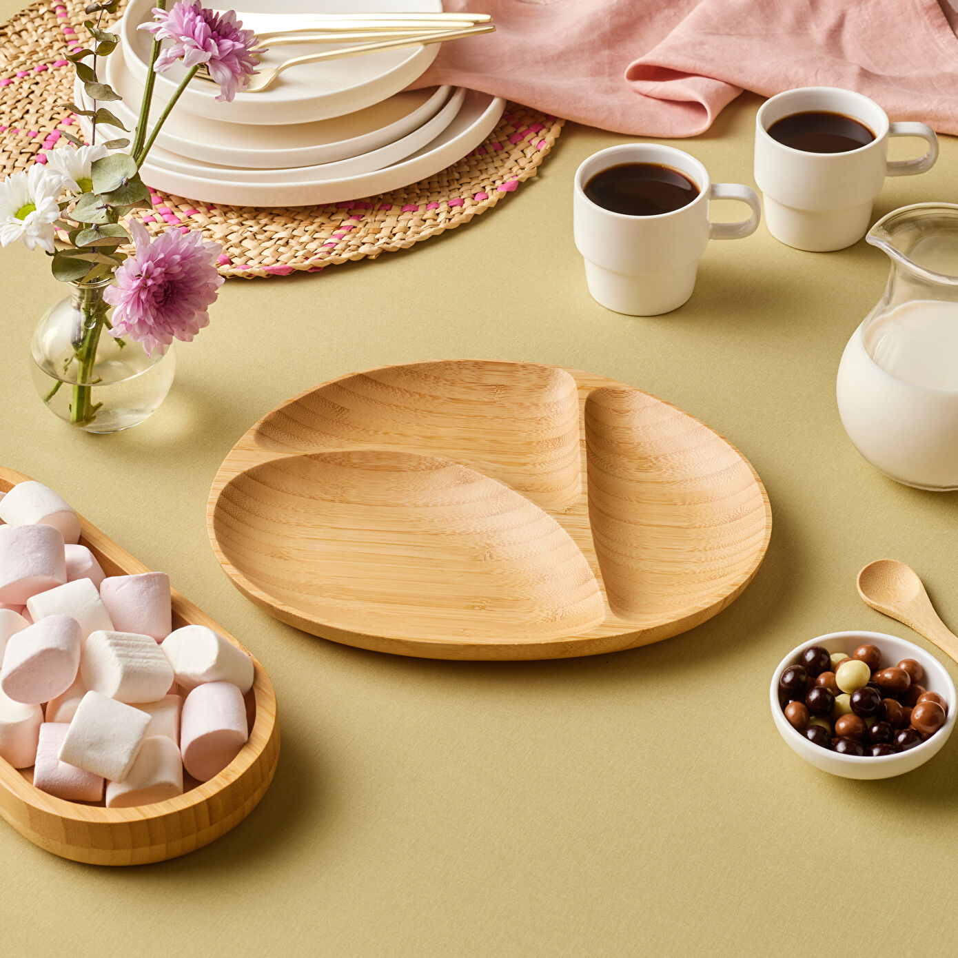 Karaca Bambu Nora 3 Bölmeli Elips Sunumluk