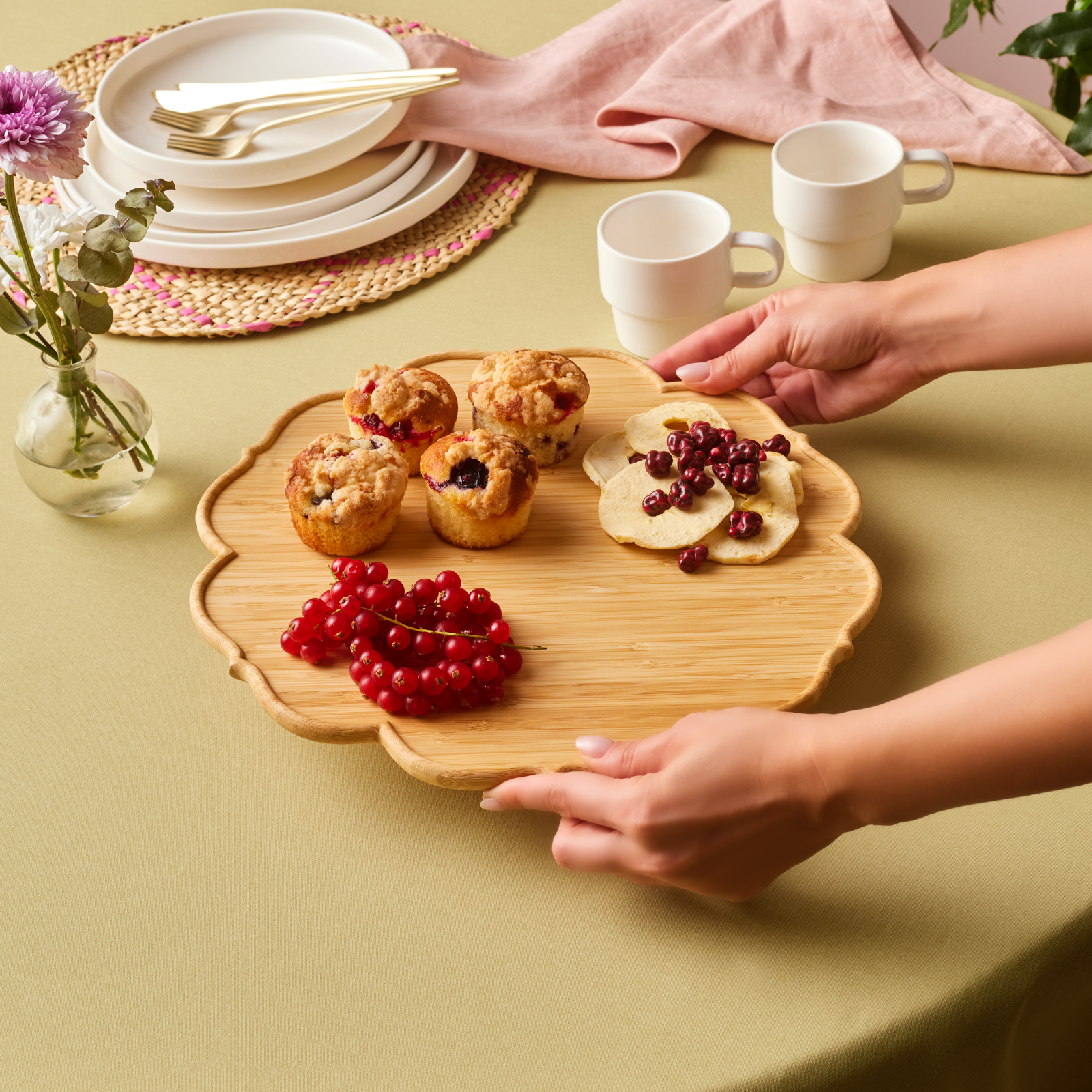 Karaca Bambu Rosa Çiçek Formlu Sunum Tahtası