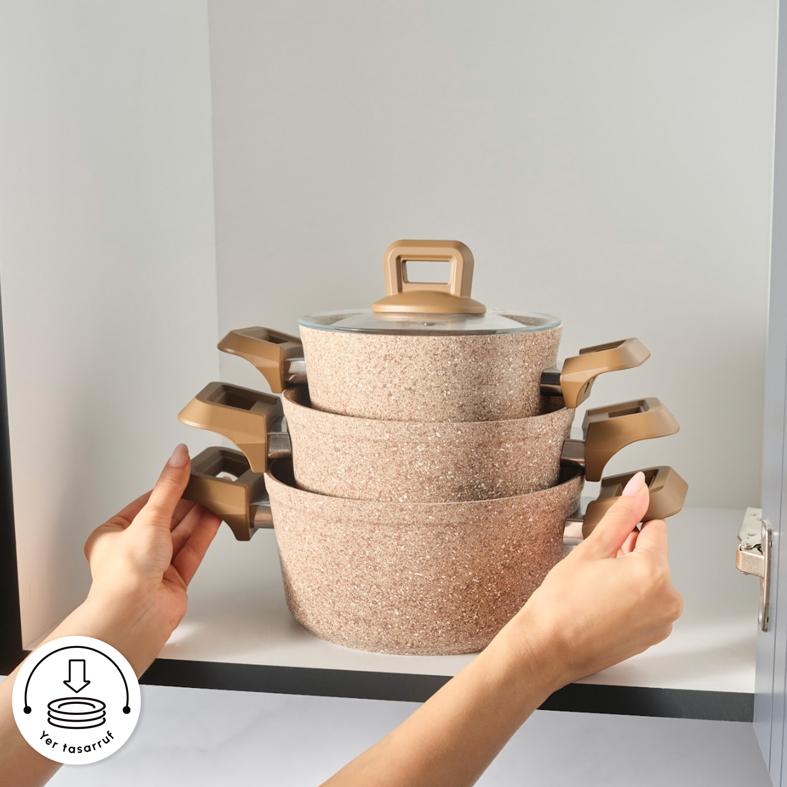 Modern tasarımları ve ergonomik kulpları ile Karaca Biogranit tencere setleri, hem estetik hem de fonksiyonel bir mutfak deneyimi sunar. İster günlük yemeklerde ister özel davet sofralarında; Biogranit farkını her tarifte hissedin.