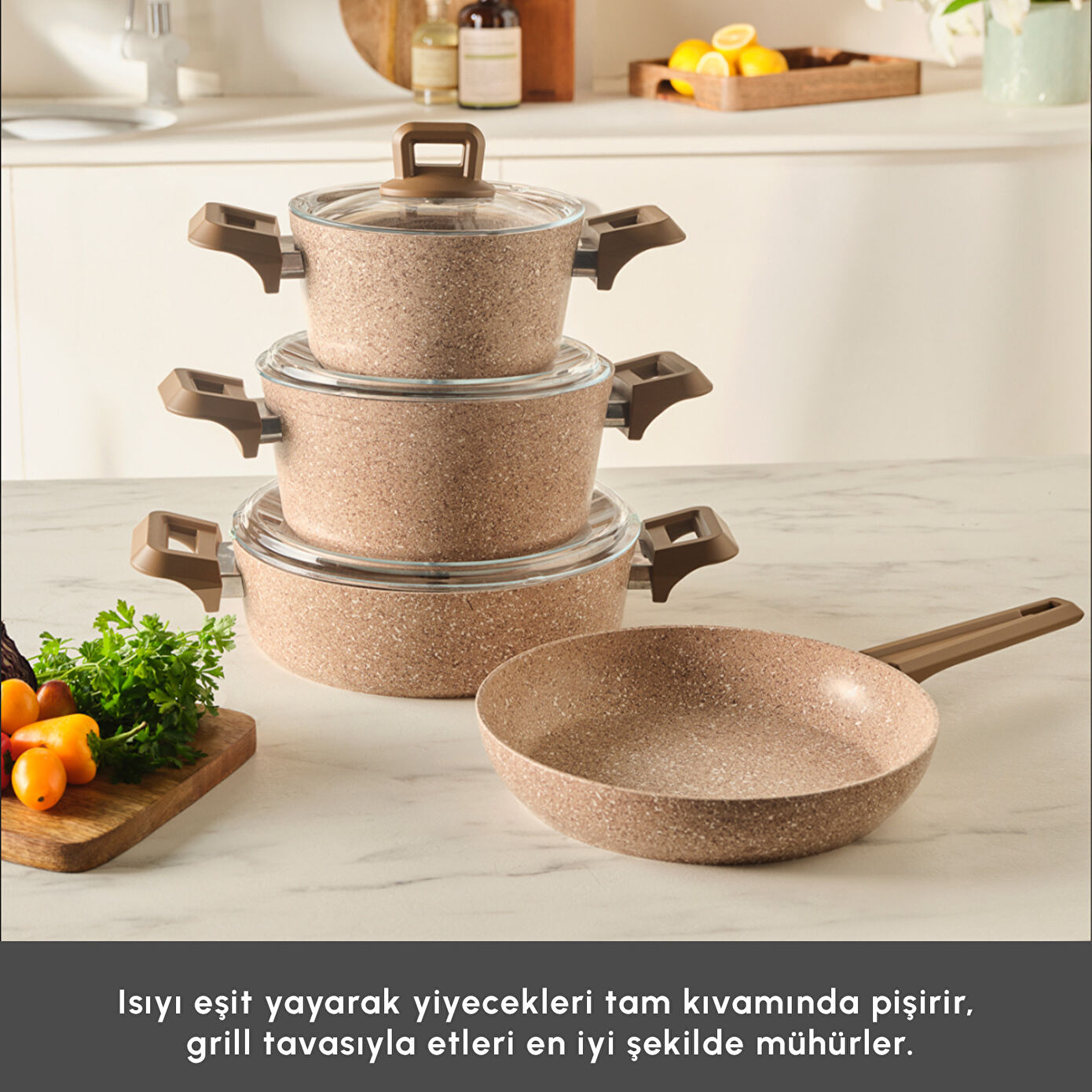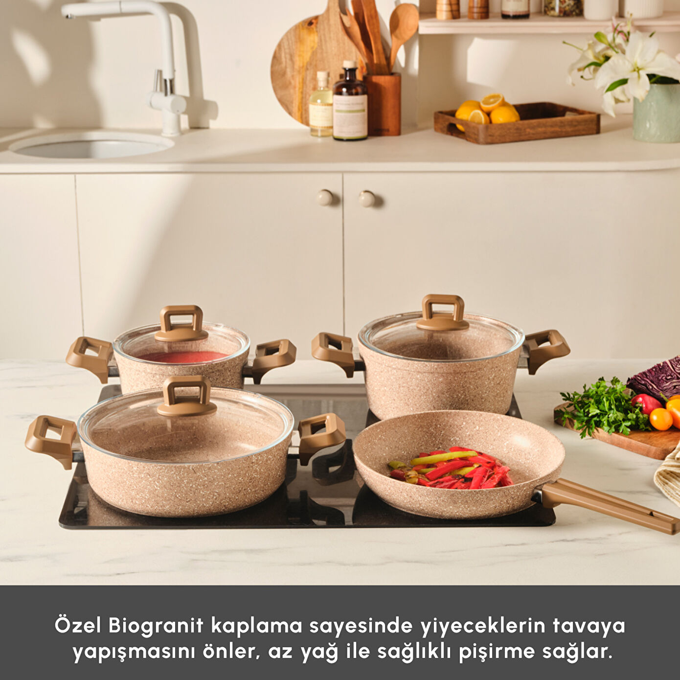 Modern tasarımları ve ergonomik kulpları ile Karaca Biogranit tencere setleri, hem estetik hem de fonksiyonel bir mutfak deneyimi sunar. İster günlük yemeklerde ister özel davet sofralarında; Biogranit farkını her tarifte hissedin.