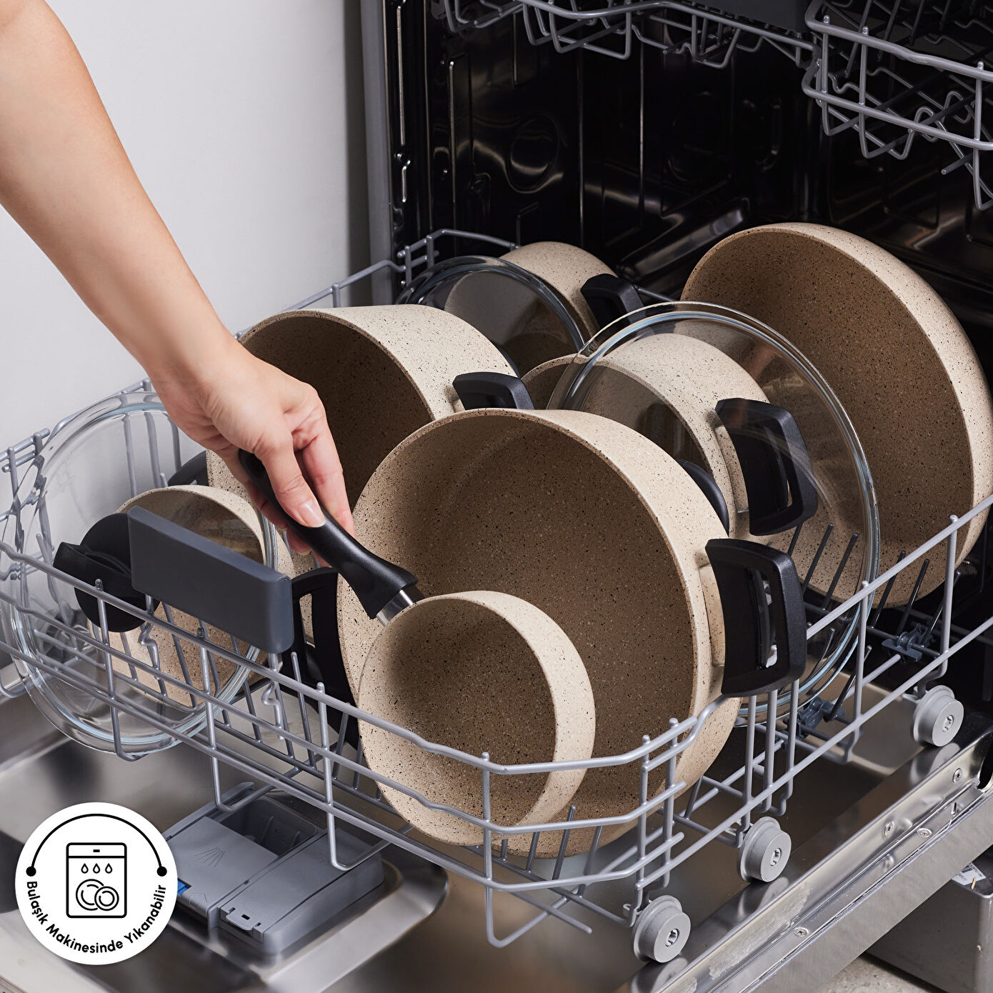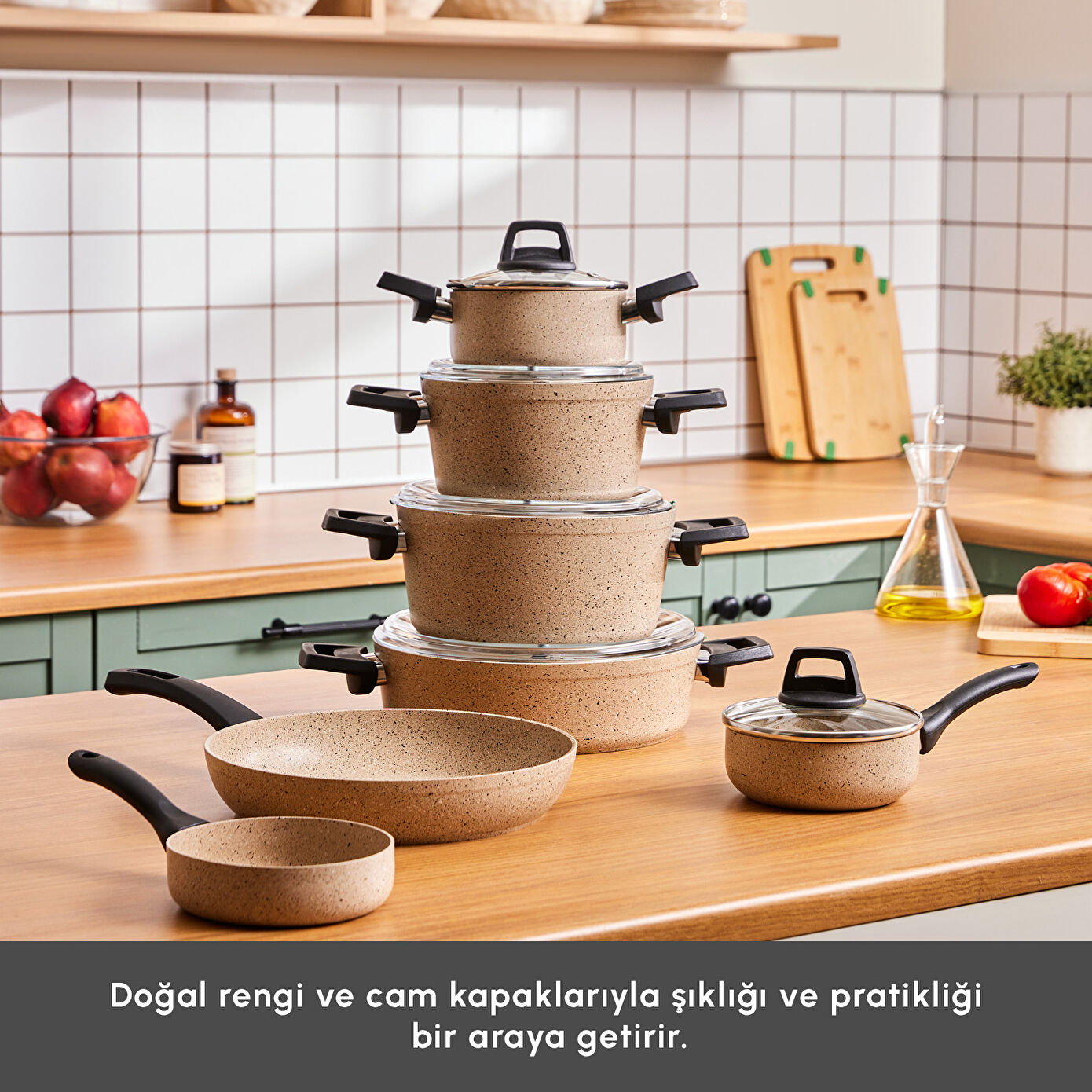 Karaca Biogranit Vincent 12 Parça Tencere Seti’nin maksimum yanmaz yapışmazlık sağlayan üstün teknolojisi ile yemeklerinizi kolayca tam kıvamında pişirebilirsiniz. Çizilmelere karşı ultra dayanıklı Biogranit Set, kulpları ile kullanımı kolaydır. Isıya dayanıklı özel cam kapağı ile pişirme sürecinin kolayca takip edebilirsiniz. Geniş set içerisinde; 18 ve 22 cm’lik iki ayrı derin tencere, 26 cm’lik karnıyarık tenceresi, 26 cm’lik tava, 14 cm’lik tencere, 14 cm’lik sütlük ve 14 cm’lik tava bulunur. Bulaşık makinasında yıkanabilen yapısı ile oldukça kullanışlıdır. Rengi ile mutfağınızla eşsiz bir uyum yakalar.