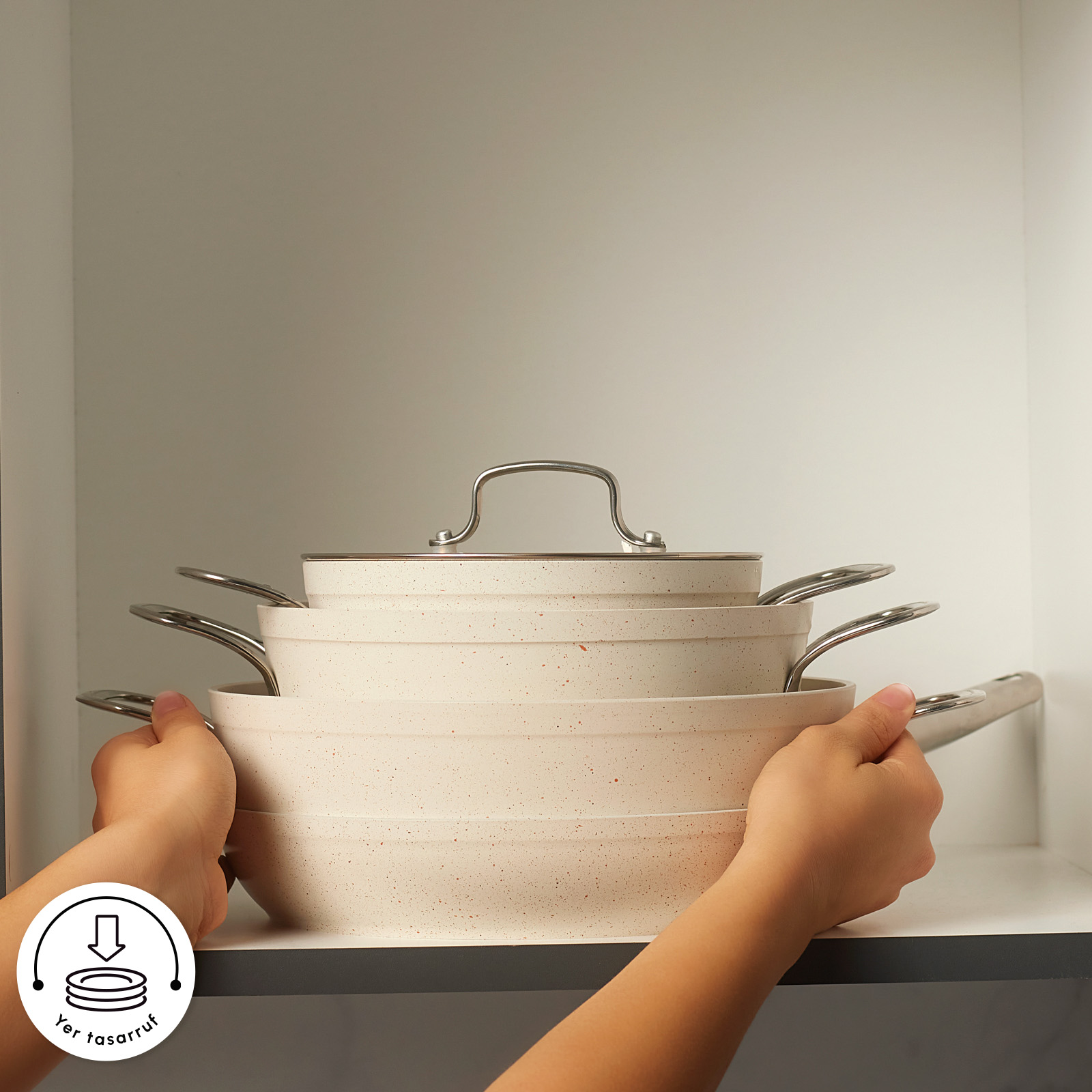 Karaca Biogranit White Stone 7 Parça Tencere Seti