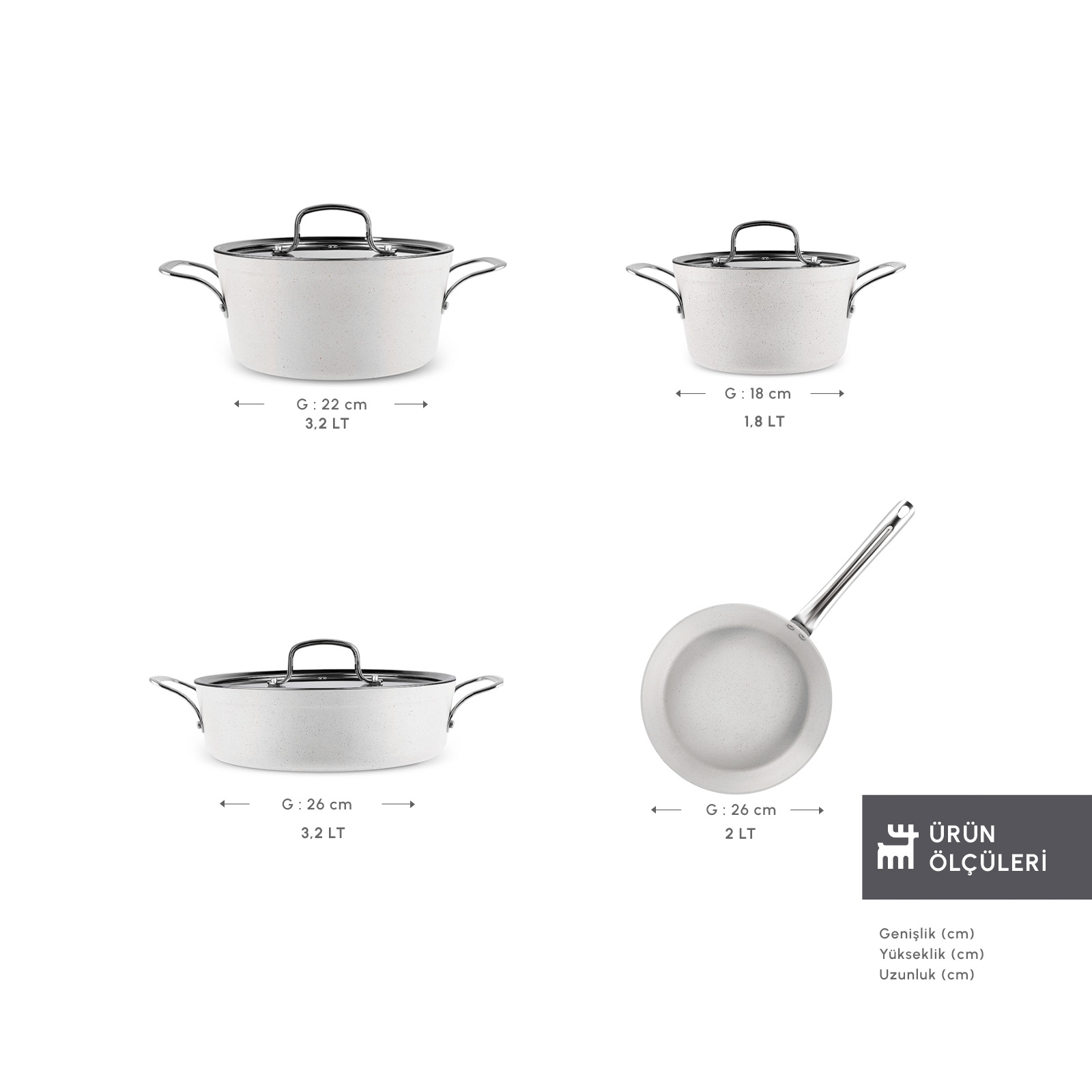 - Derin Tencere (18 cm) (1.8 Litre) + Kapak