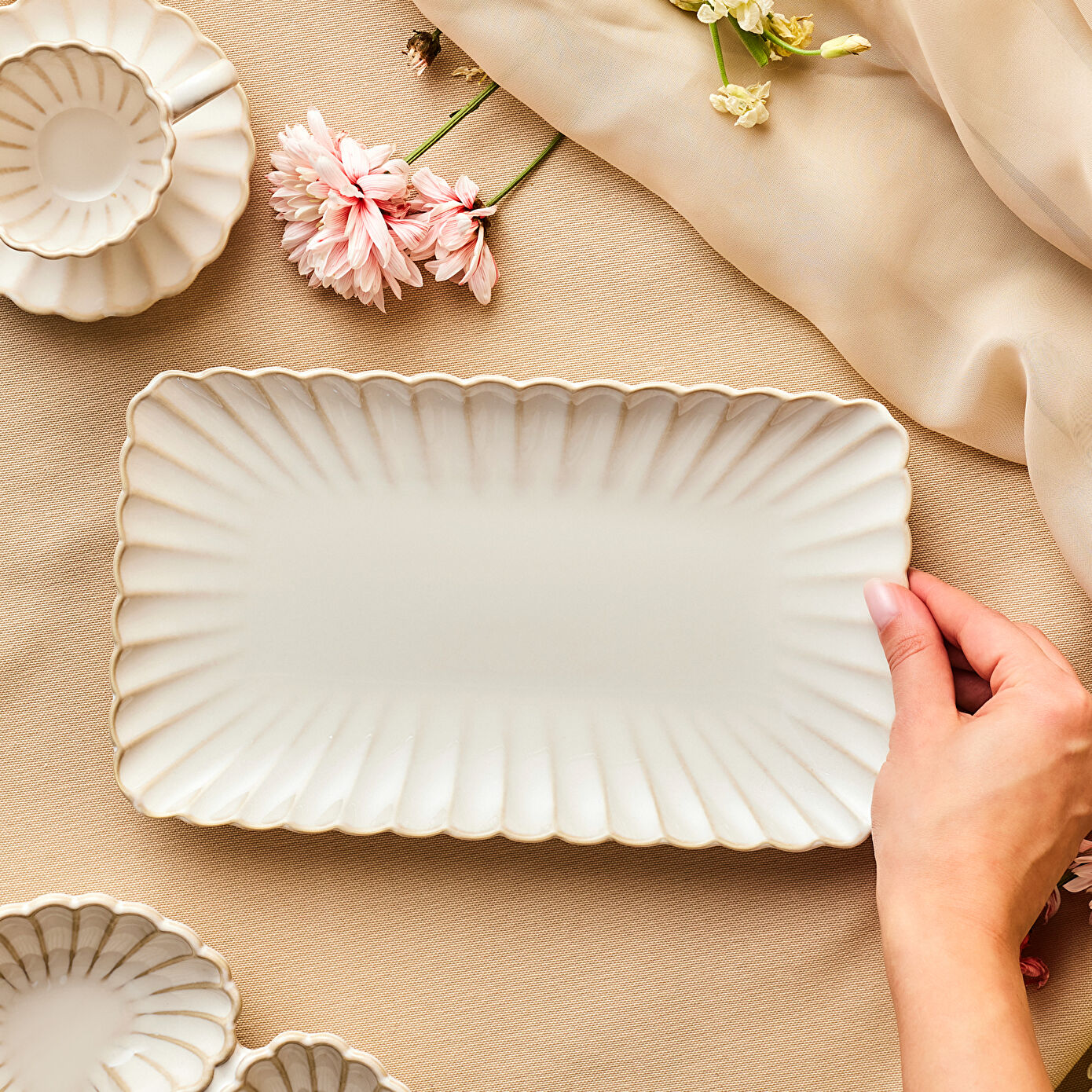 Yumuşak renk geçişleri ve zarif desenleriyle Daisy Serisi, sade şıklığı sevenler için ideal bir seçim sunuyor. Kahvaltı sofralarından çay saatlerine, misafir ağırlamaktan keyifli molalara kadar her anınıza uyum sağlayan bu seri, sofralarda bütünlüklü ve estetik bir görünüm yaratıyor.