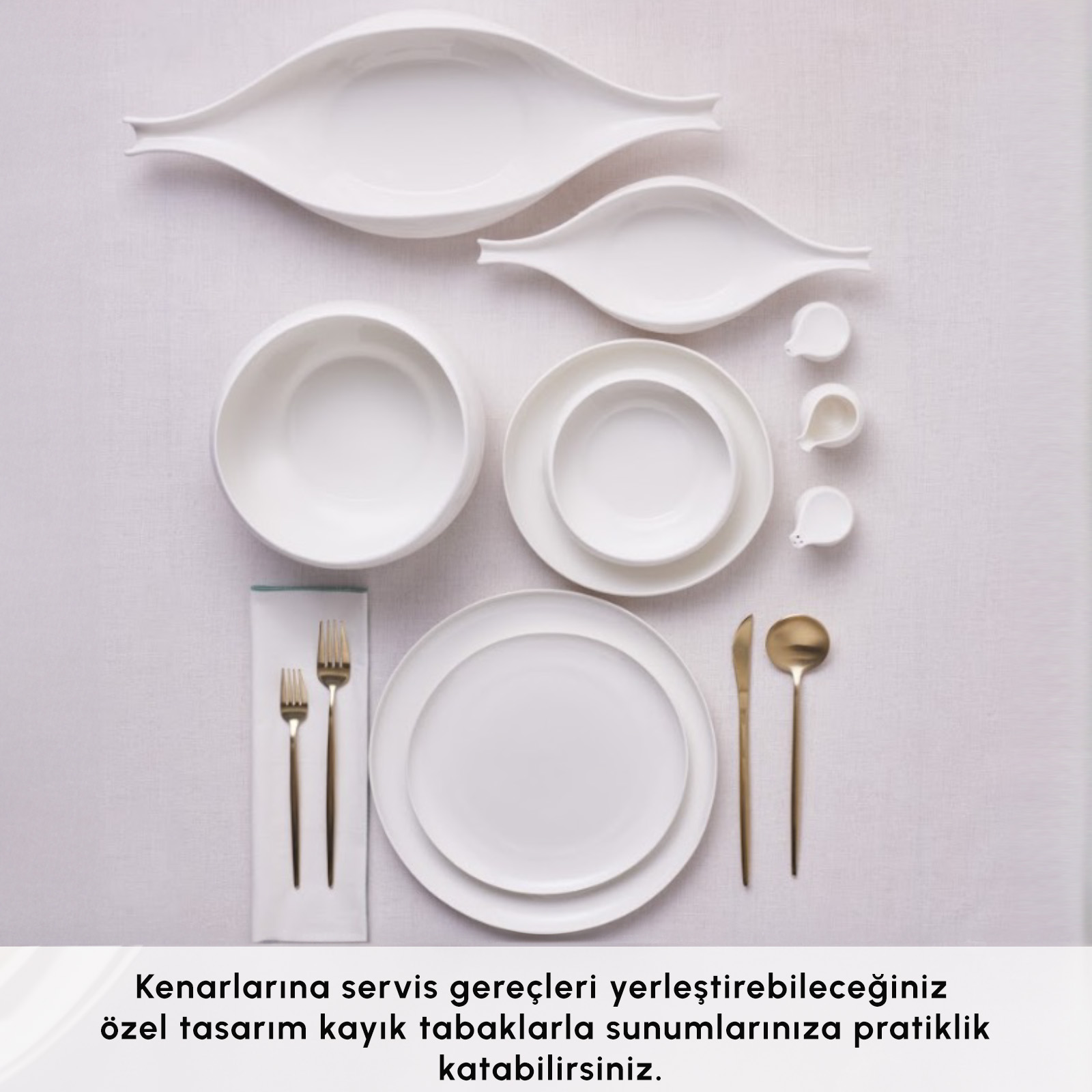 3 Adet Kayık Tabak: Mezeler, salatalar ve ordövrler için sofranın merkezinde şıklık yaratır.