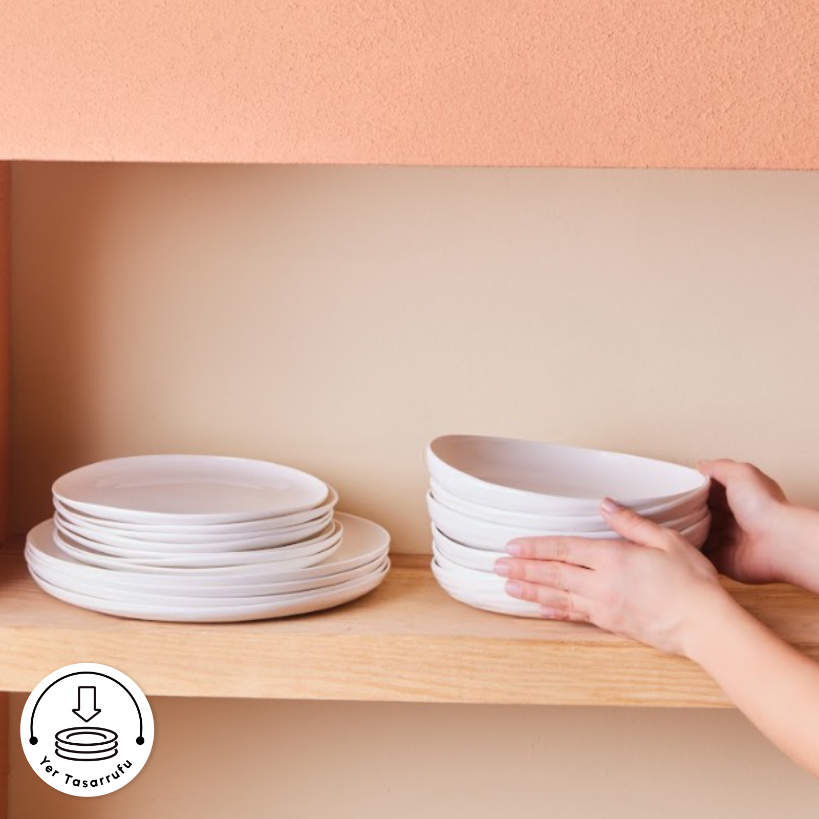 12 Adet Servis Tabağı: Ana yemeklerin göz alıcı sunumları için ideal boyutta.