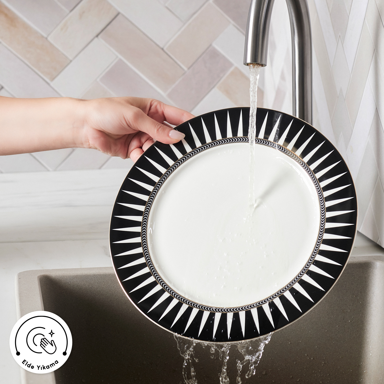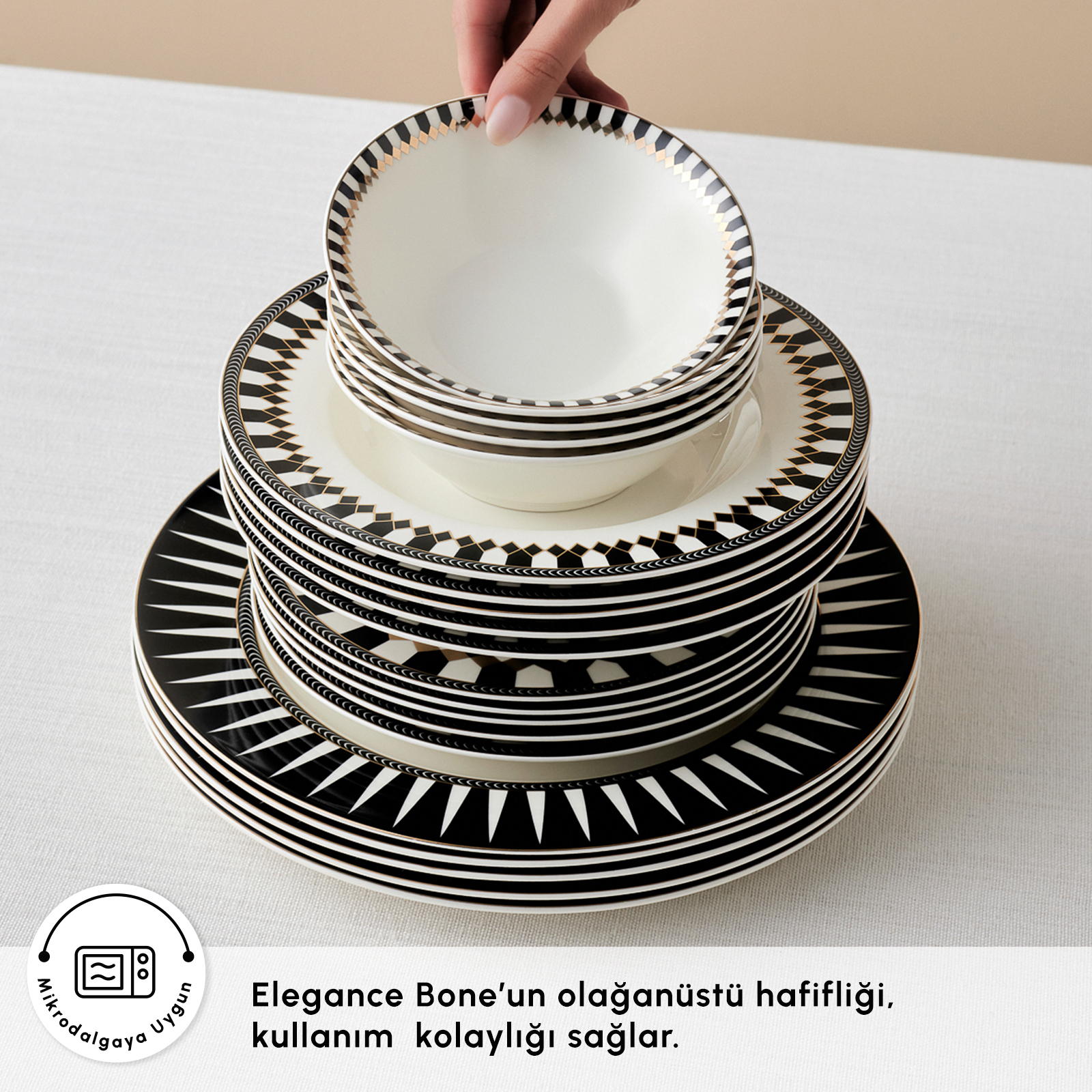 Kemik tozu içeren porselen yapısı sayesinde son derece hafif, aynı zamanda uzun ömürlü ve dayanıklıdır. Hem günlük kullanıma hem de özel davet sofralarına uyum sağlayan bu seri, zarif tasarımı kadar pratikliğiyle de fark yaratır.