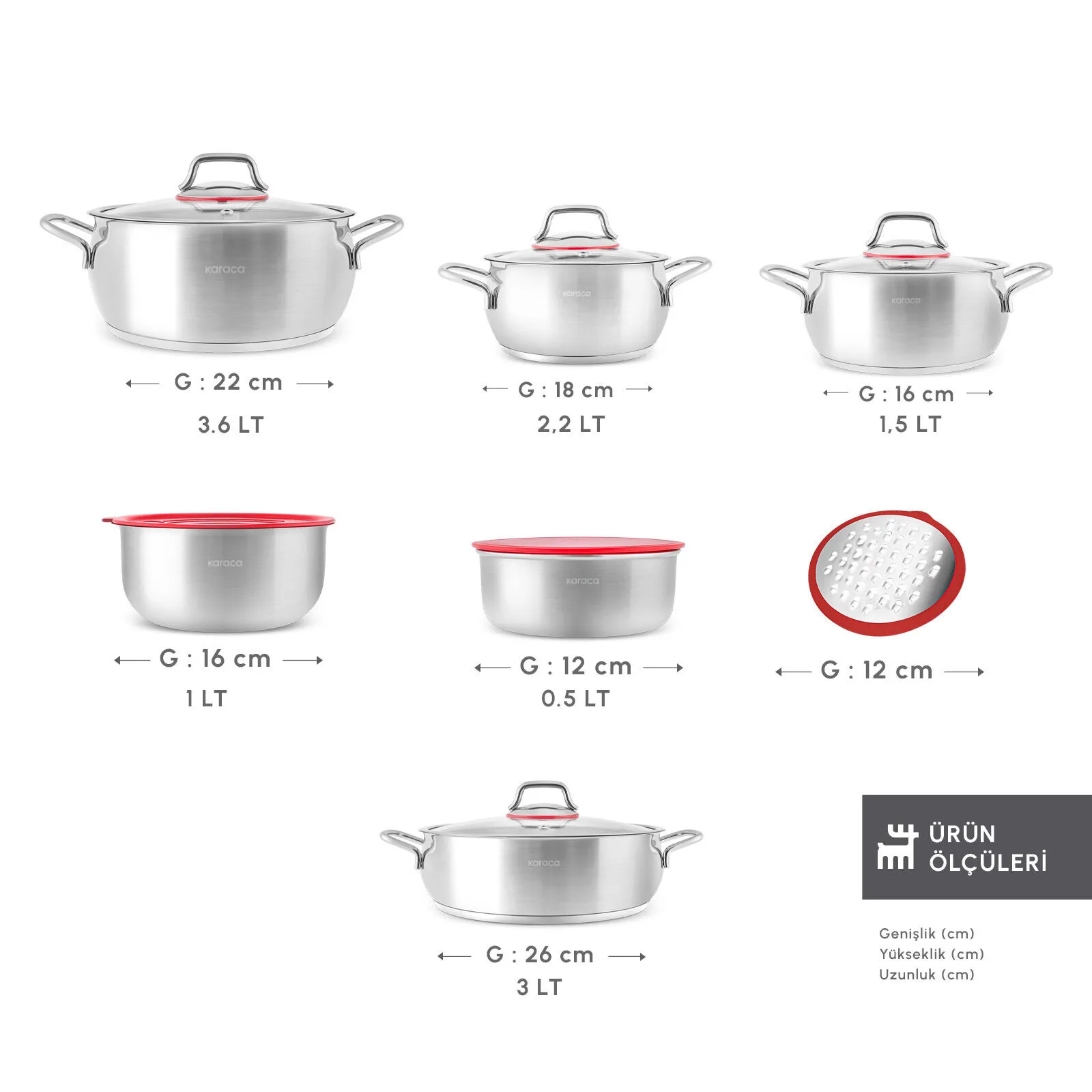 Karaca Emirgan XL 13 Parça Saklama Kaplı Çelik Tencere Seti ile mutfaktaki tüm ihtiyaçlarınızı karşılayabilirsiniz. Cam kapakları sayesinde yemeğin pişme sürecini takip etmenizde kolaylık sağlar. Paslanmaz çelik yapısı sayesinde sağlıklı ve dayanıklıdır. Bulaşık makinesinde yıkanabilen yapısı ile oldukça kullanışlıdır. İndüksiyon tabanlı ocaklar dahil, tüm ocaklarınızda güvenle kullanabilirsiniz.