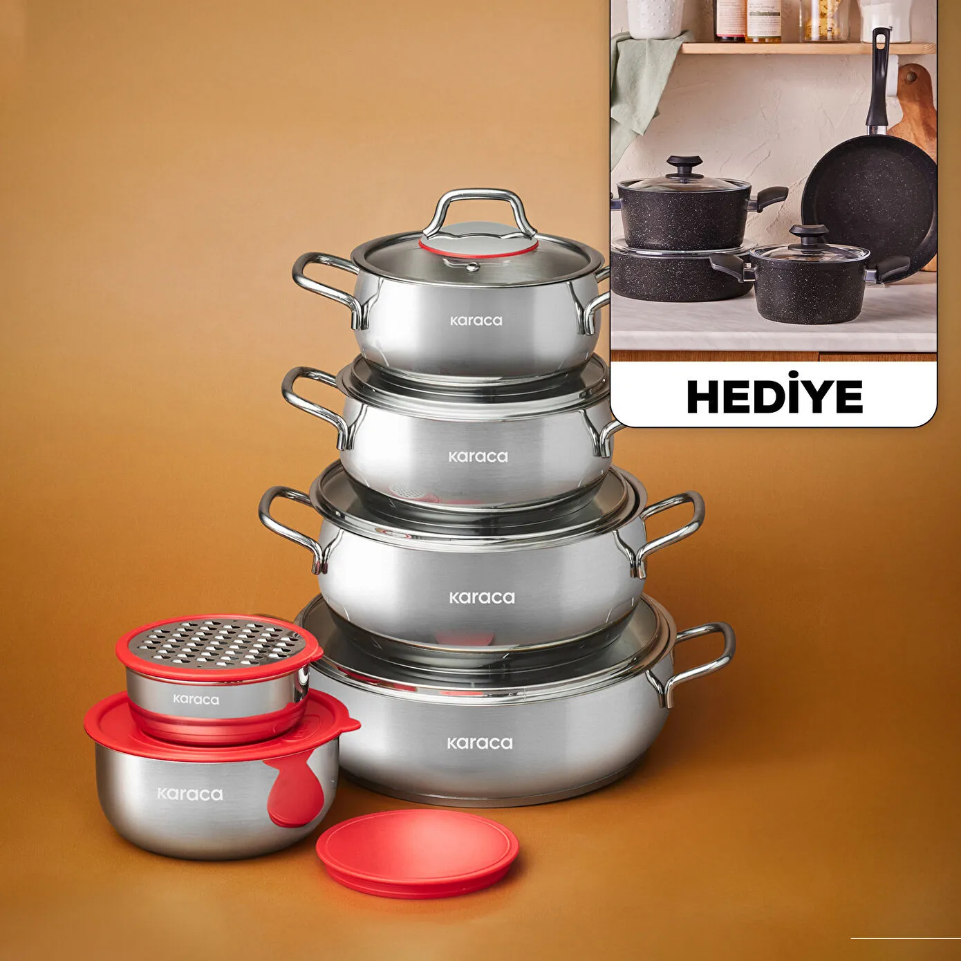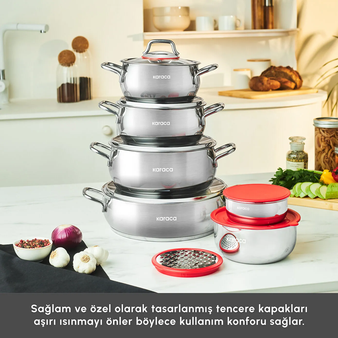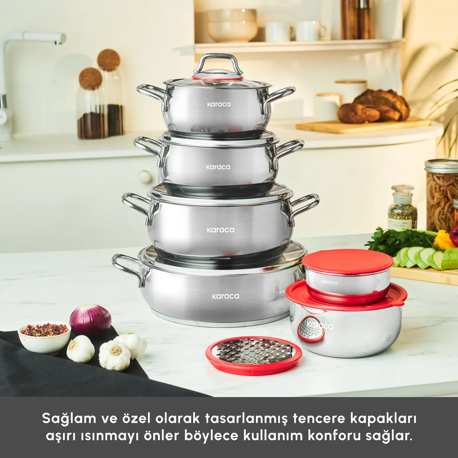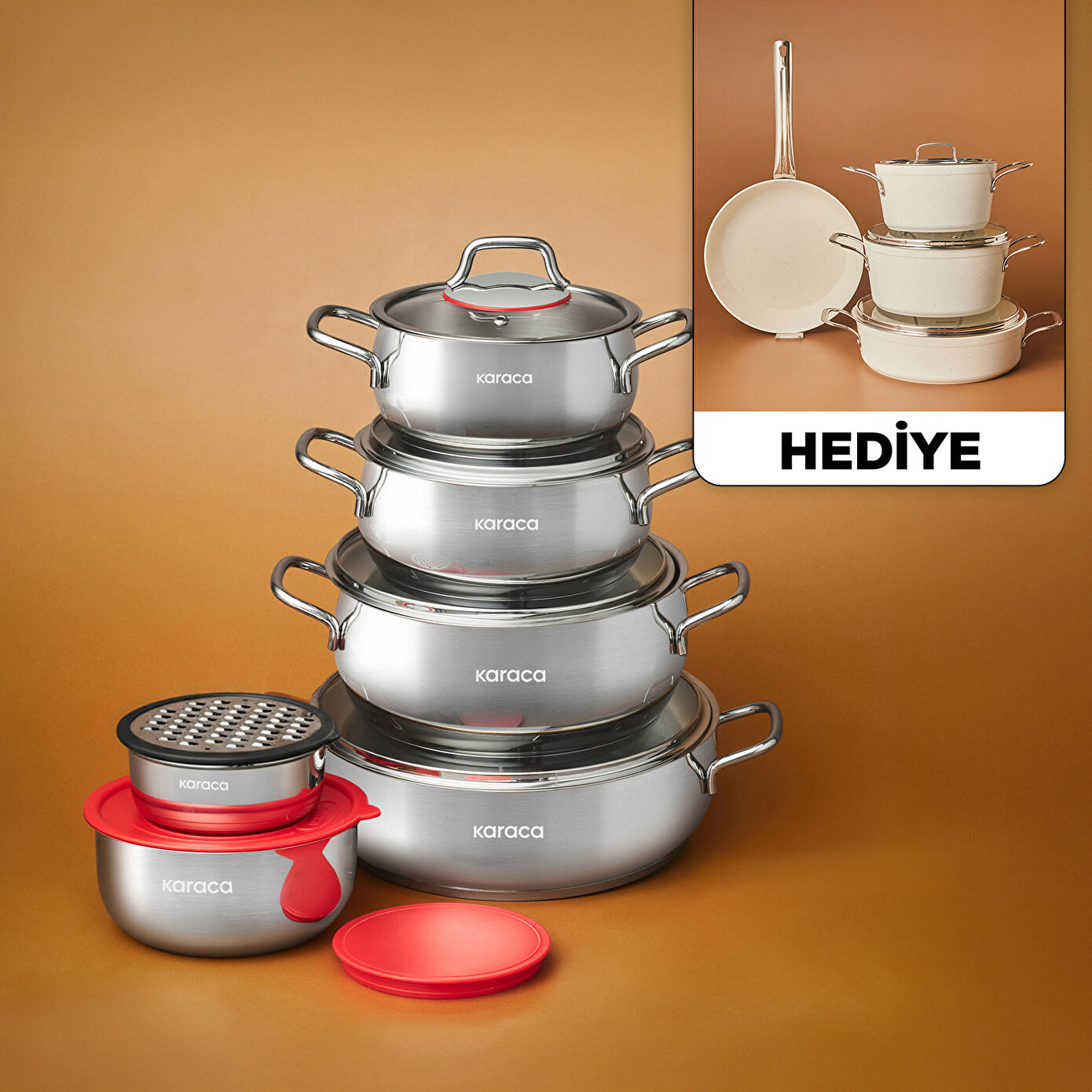 Karaca Emirgan Xl İndüksiyon Tabanlı 13 Parça Saklama Kaplı Çelik Tencere Seti