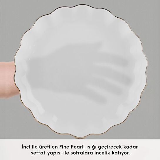 Fine Pearl Extra, sadece bir yemek takımı değil; aynı zamanda sofranızda sergilenecek bir sanat eseri. Altın detaylarla süslenen bu özel tasarım, hem klasik hem modern sunumlara uyum sağlayarak sofranıza ihtişamlı bir dokunuş katar.