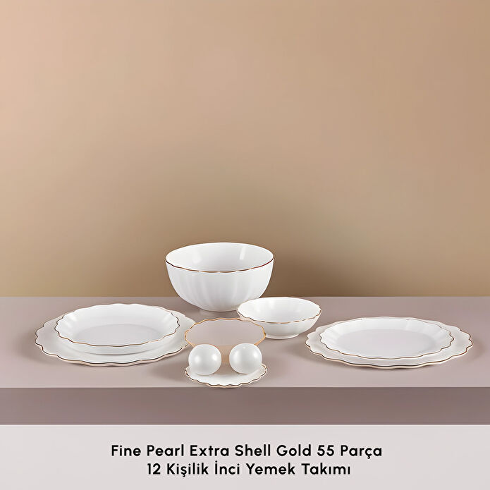 Karaca Fine Pearl Extra Shell 55 Parça 12 Kişilik Yemek Takımı Gold
