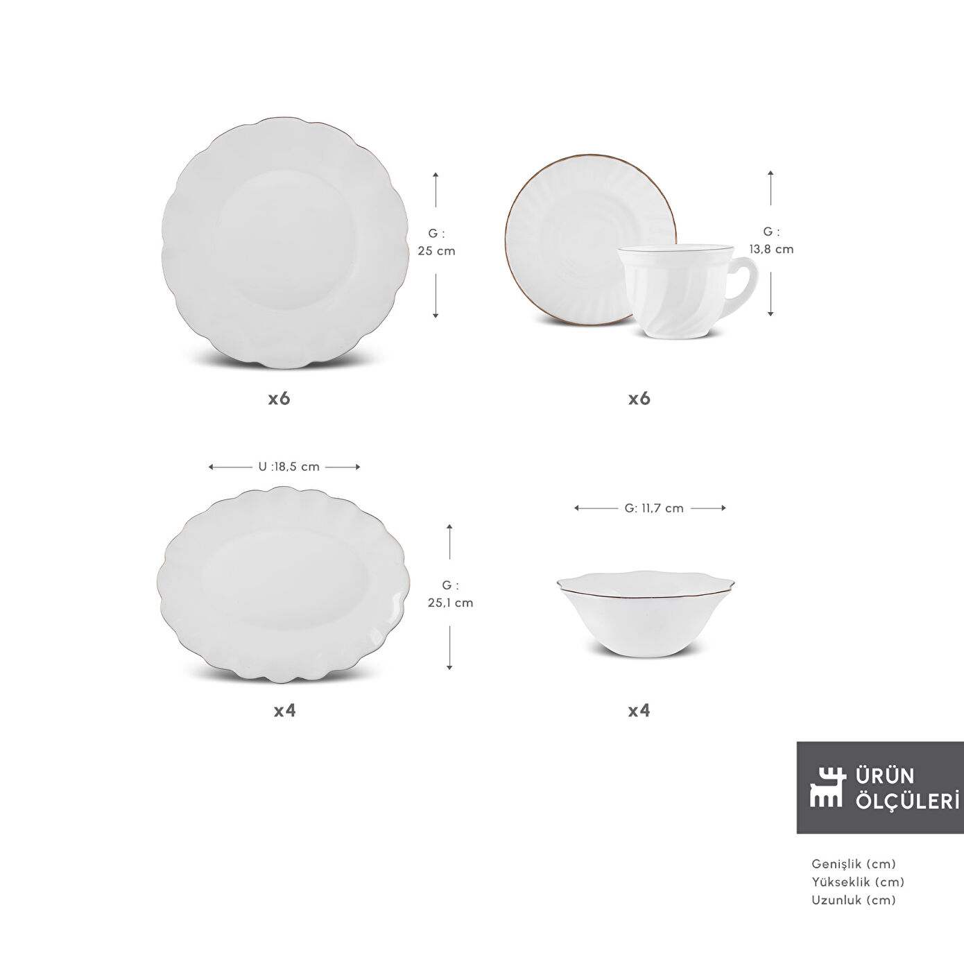 - 6 adet çay fincan tabak 13,8 × 1,7 cm (genişlik x yükseklik)