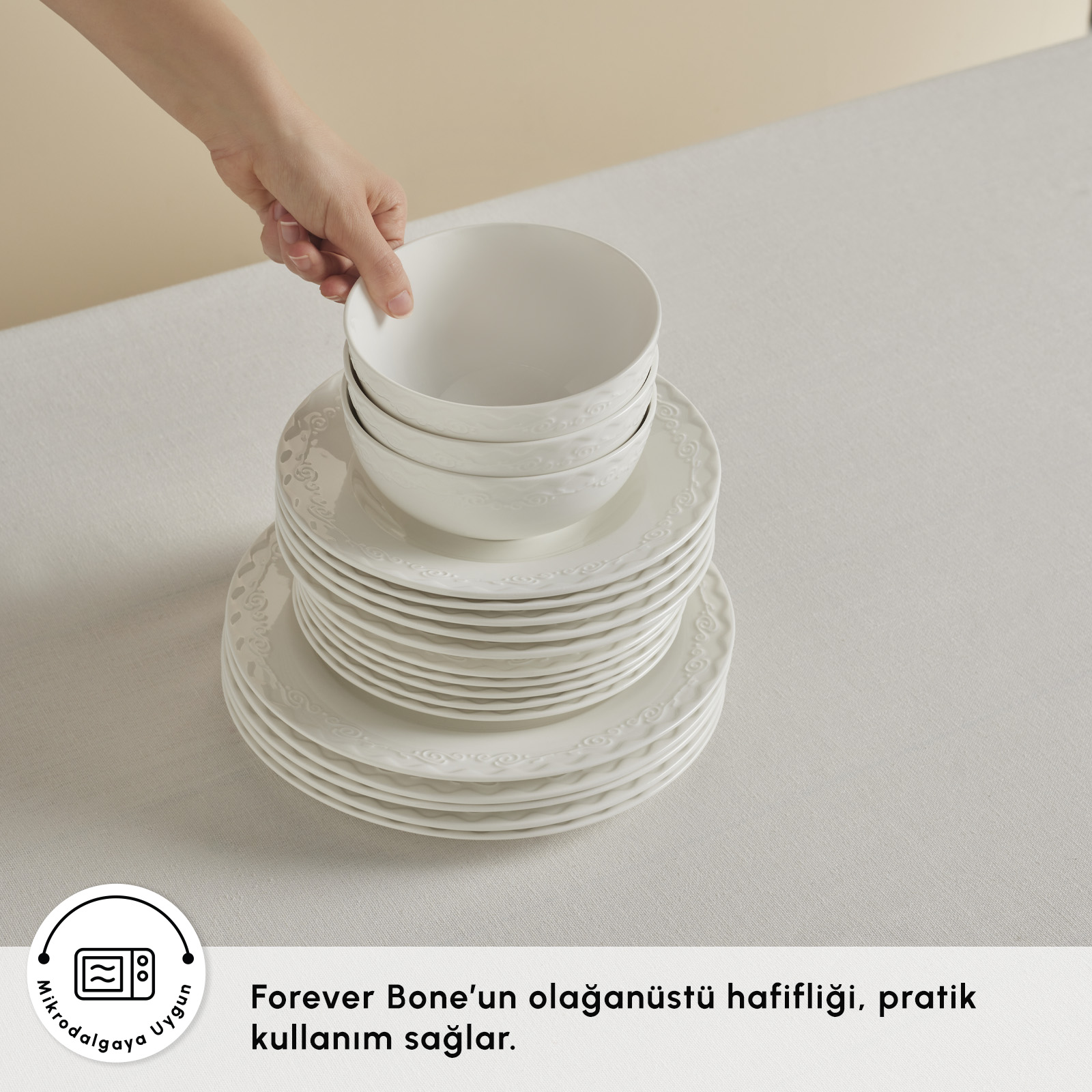 Forever Bone Serisi, hem günlük kullanıma uygunluğu hem de özel davetlerdeki zarafetiyle sofranızda sonsuz şıklığın simgesi olacak.