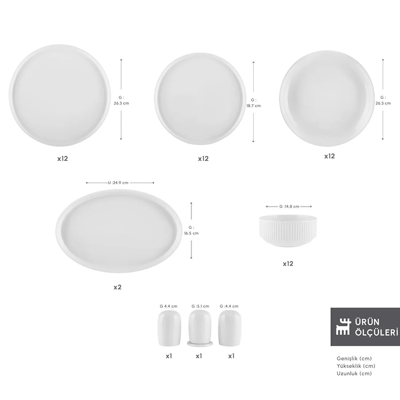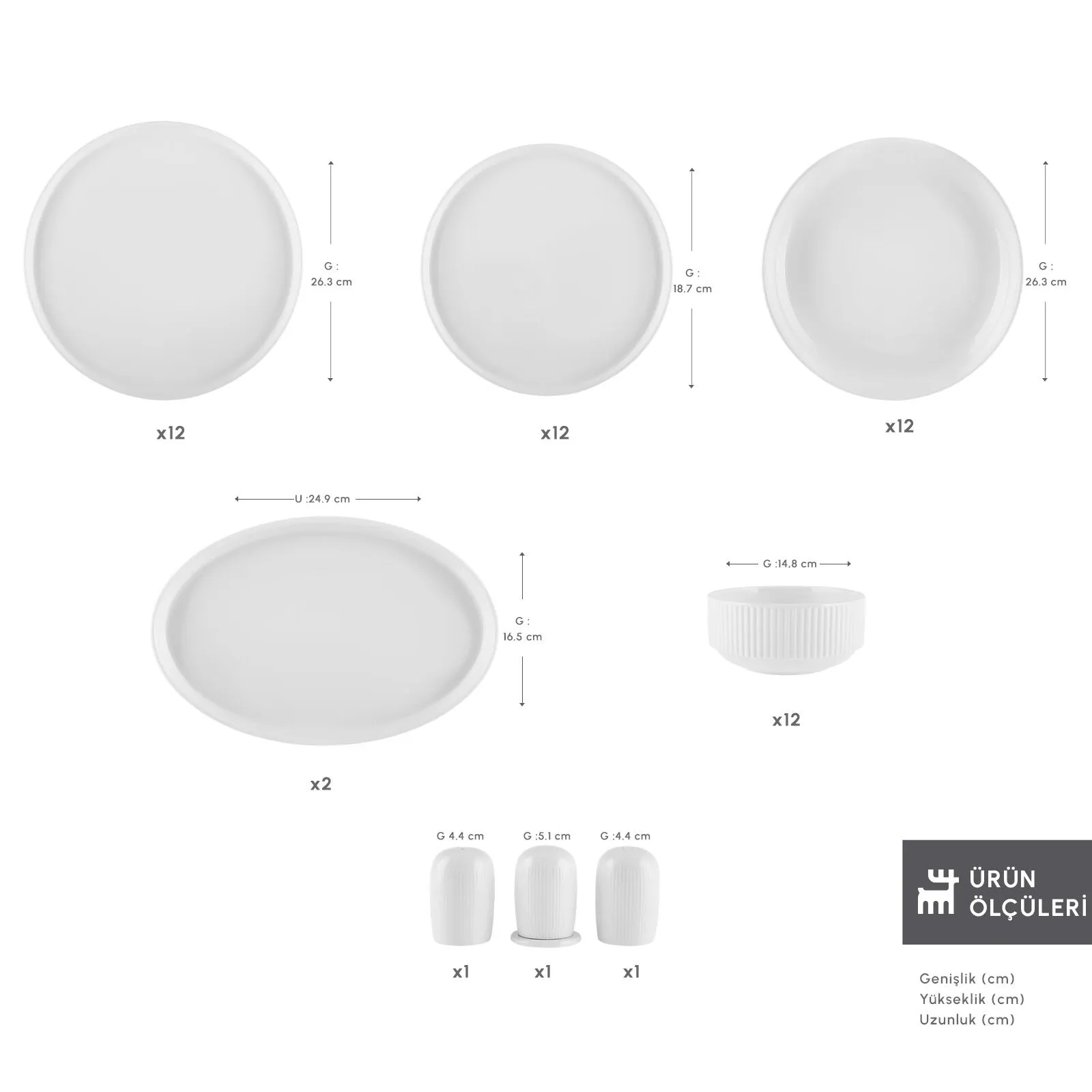- 12 Adet Servis Tabak Genişlik x Uzunluk 26.3x2.1 cm