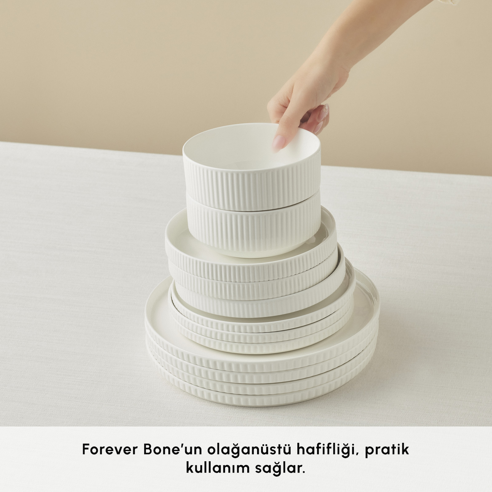 Forever Bone Serisi, hem günlük kullanıma uygunluğu hem de özel davetlerdeki zarafetiyle sofranızda sonsuz şıklığın simgesi olacak.