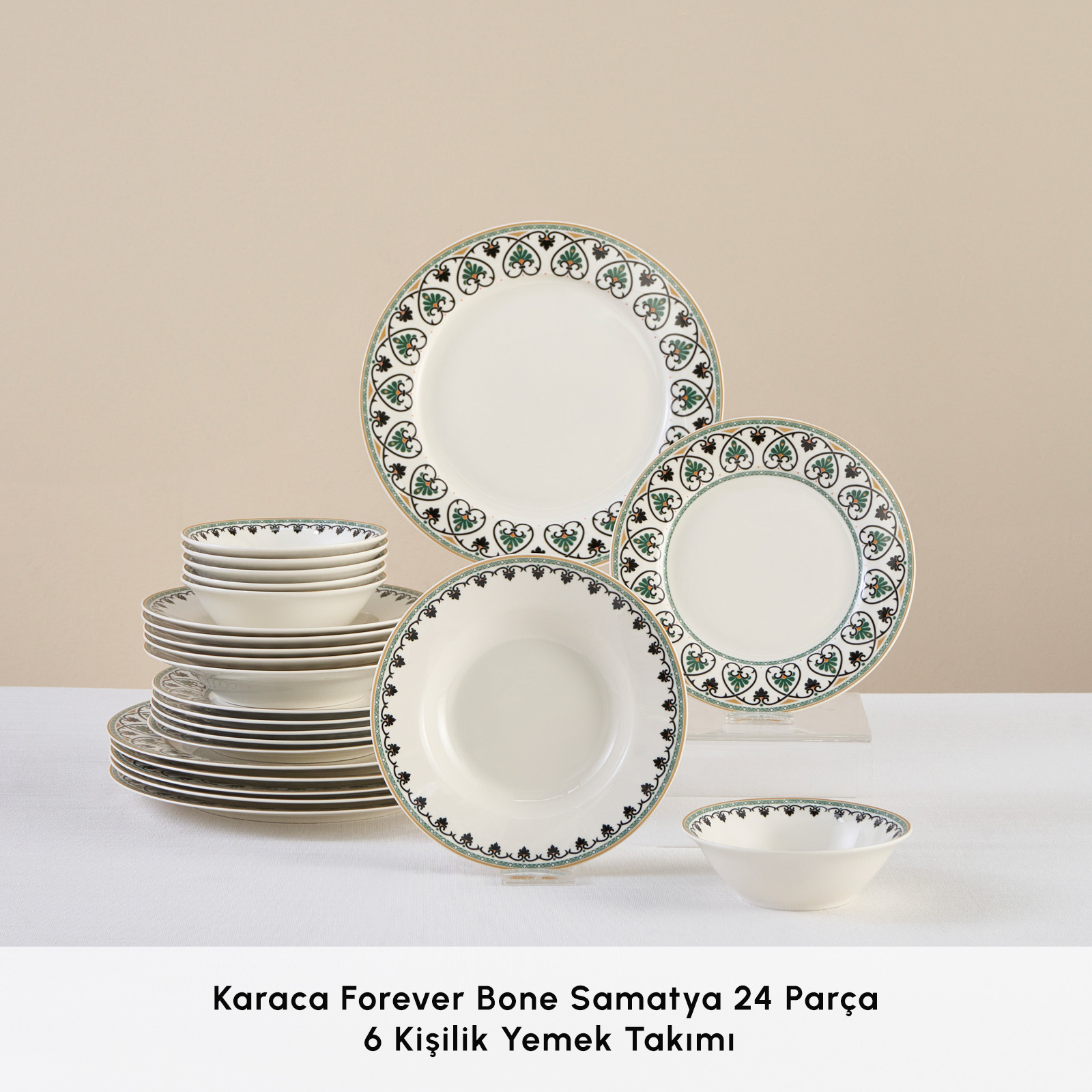 Karaca Forever Bone Samatya 24 Parça 6 Kişilik Yemek Takımı