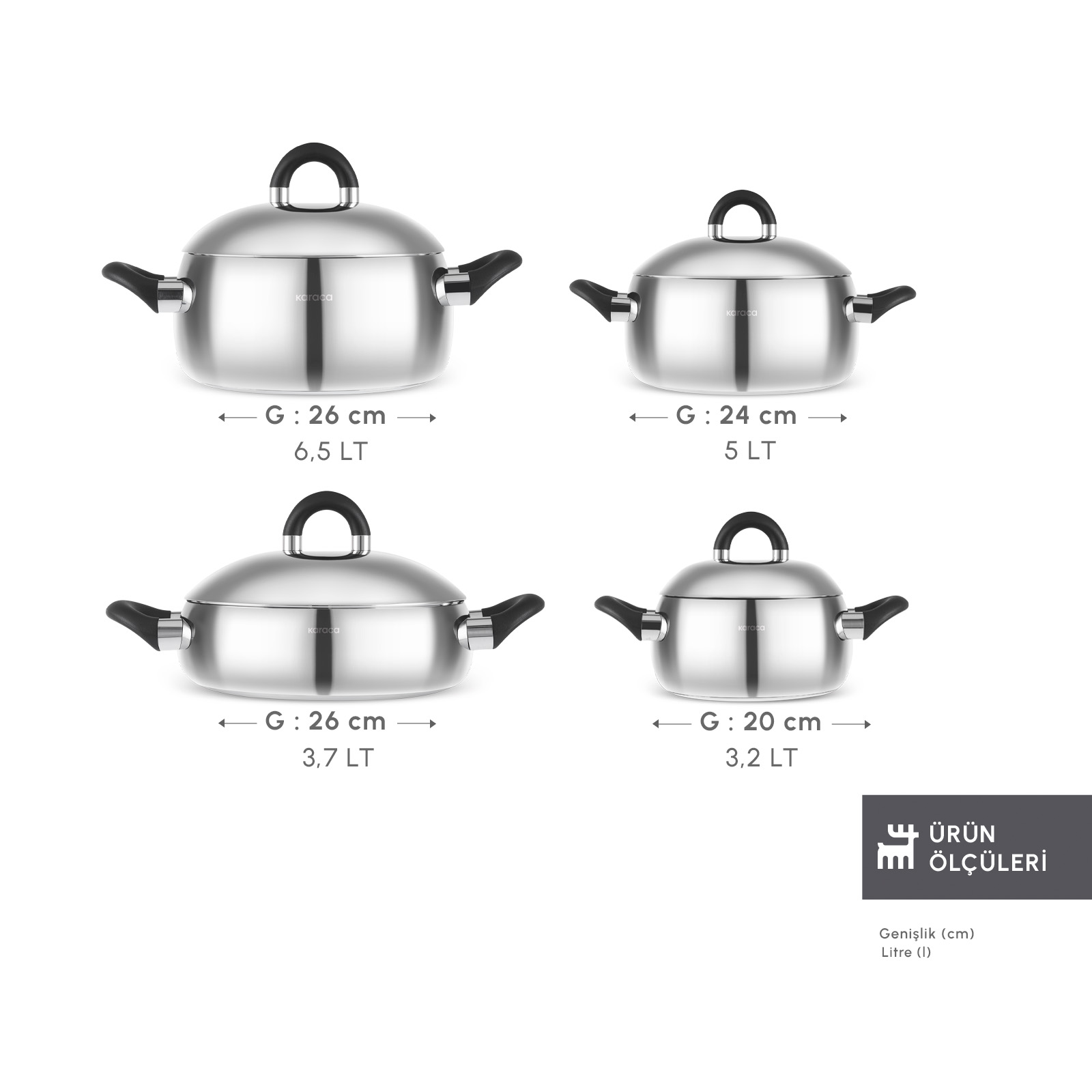 Karaca Fuji 316+ İndüksiyon Tabanlı 8 Parça Çelik Tencere Seti