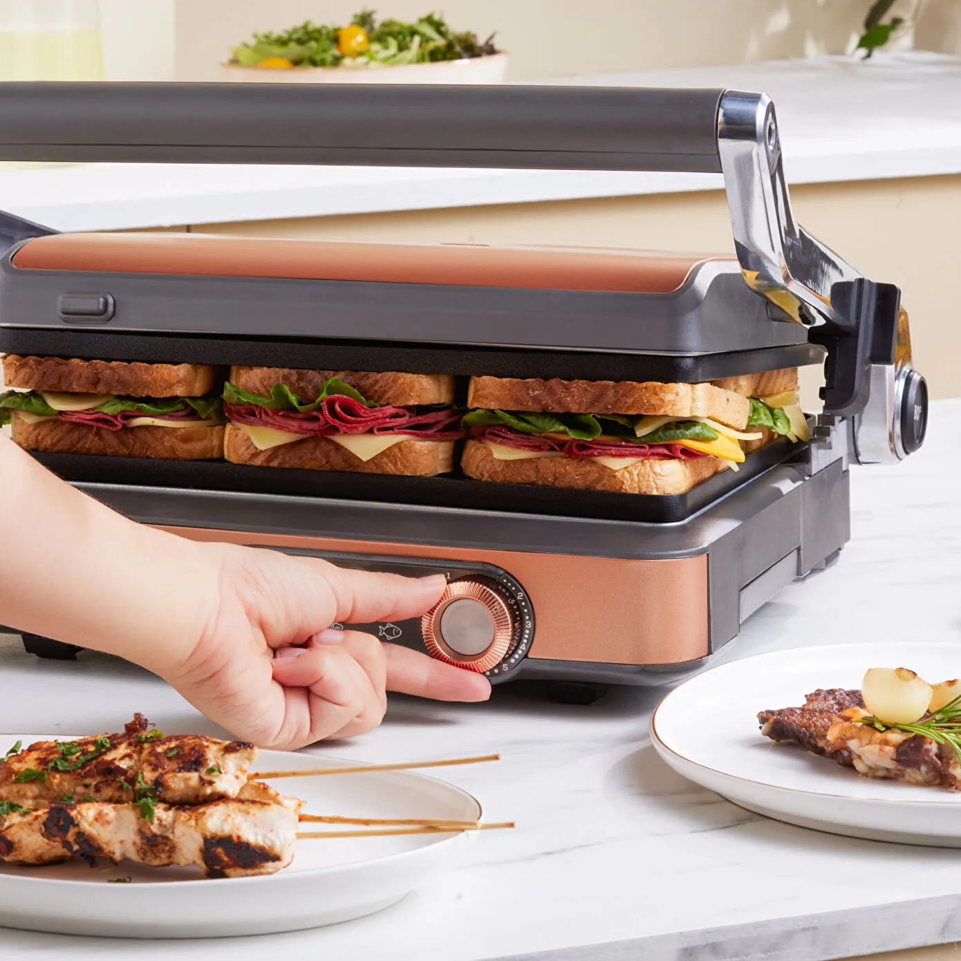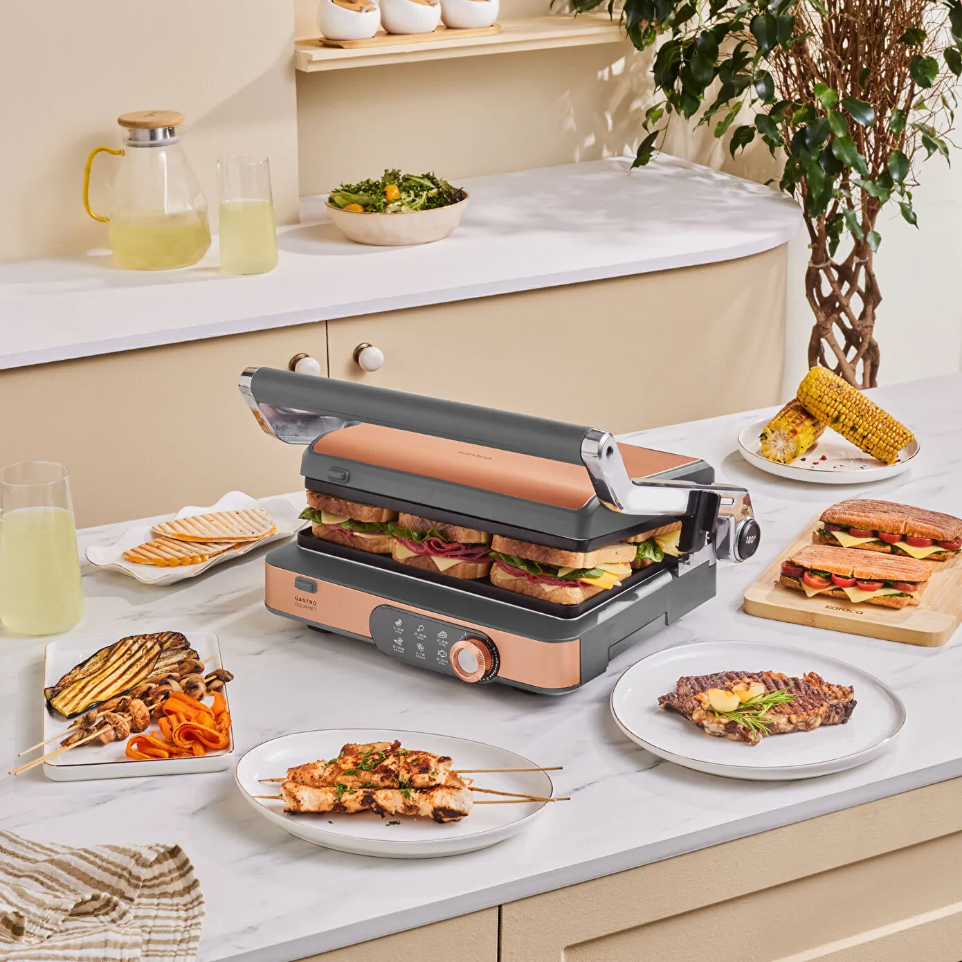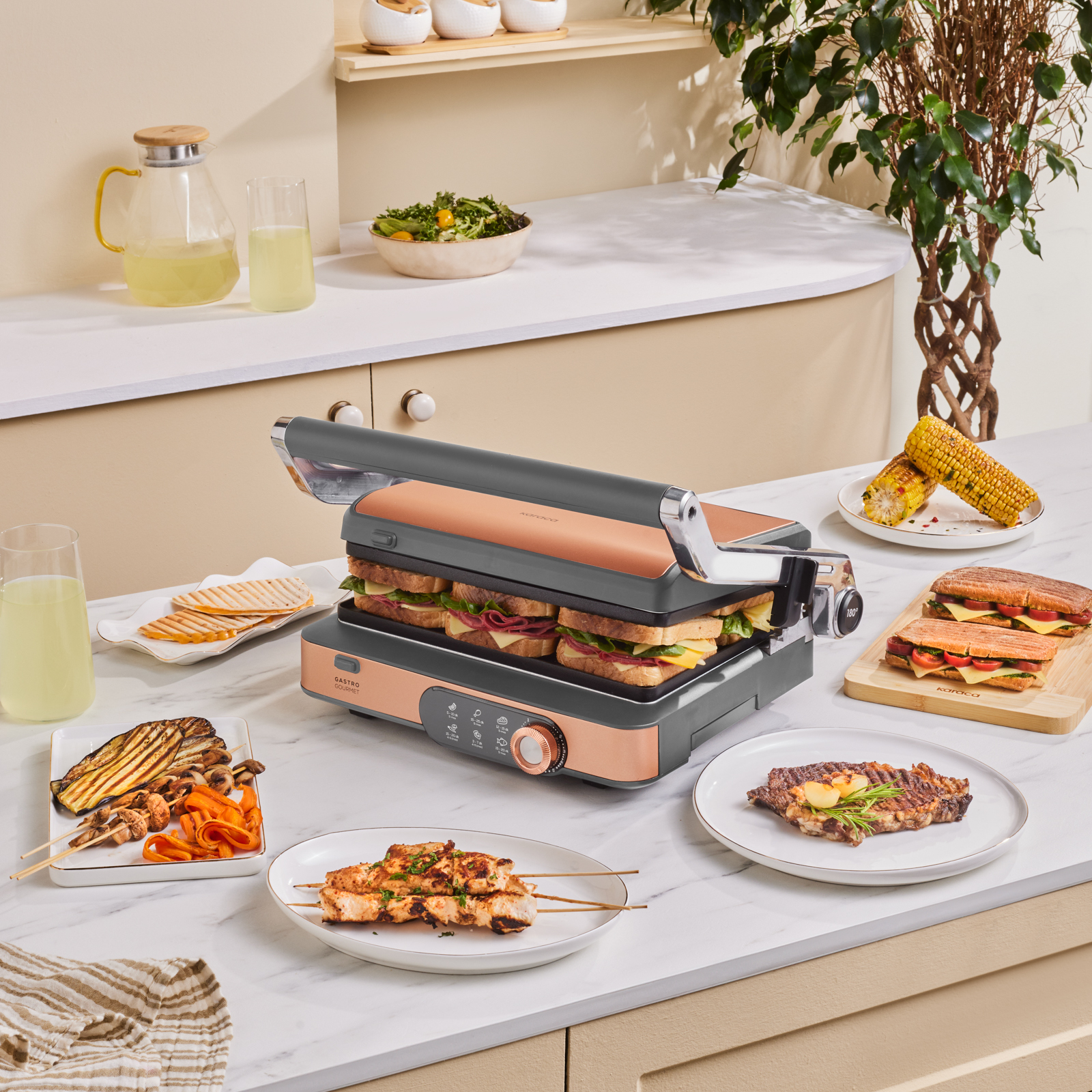 Karaca Gastro Gourmet Döküm Izgara ve Tost Makinesi Galactic Bronze 6 Dilim Kapasiteli