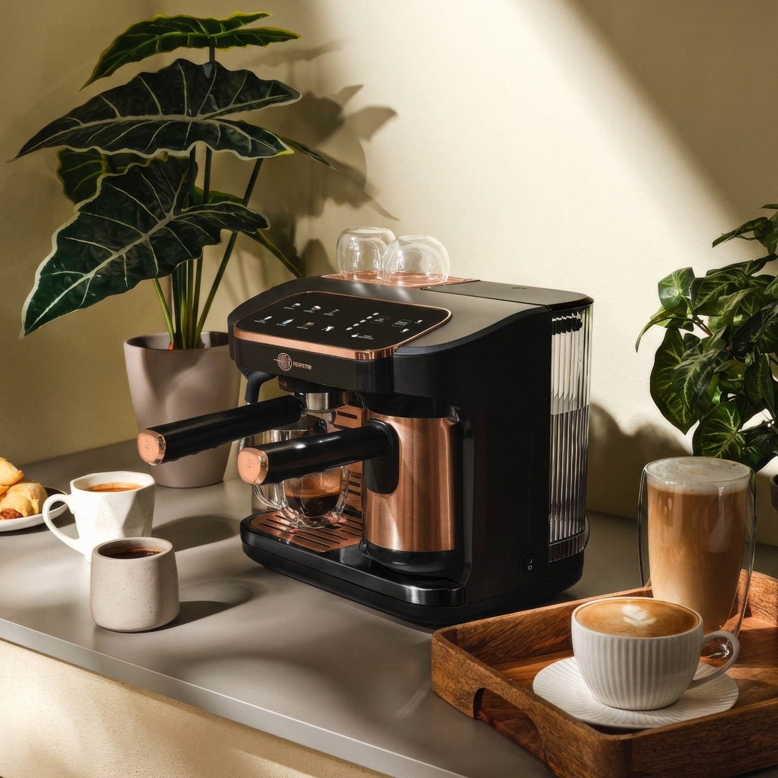 Perfetto, 20 bar basınç üretir. Bu basınç, profesyonel barista standartlarında espresso hazırlamak için gerekli güçlü bir basınçtır. Bu sayede kahve taneciklerinden maksimum aroma elde edilir, yoğun gövdeli espresso ve belirgin bir krema tabakası oluşur.