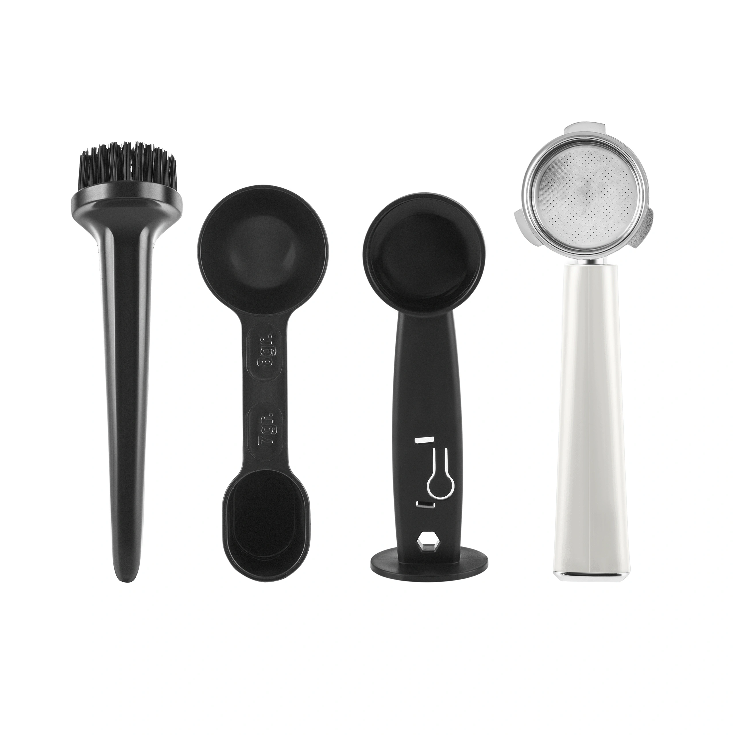 Ölçü kaşığı, kahvenin doğru miktarda ve topaklanma olmadan alınmasını sağlayacak özel bir formda tasarlandı. Temizleme fırçası ise cezve ve porta filtrede oluşan kalıntıların kolay biçimde temizlenmesi için kutu içeriğine dahil edildi.
