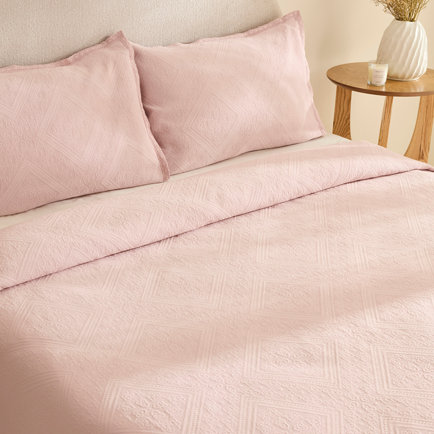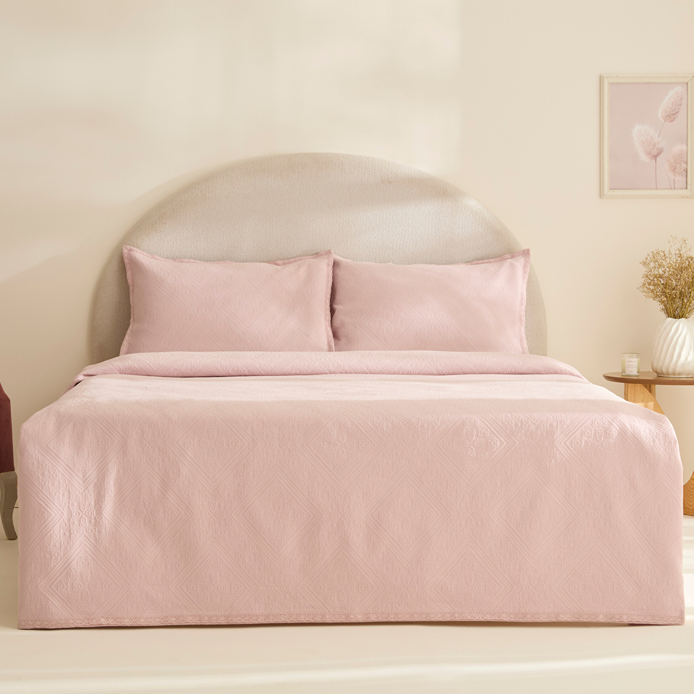 Karaca Home Fistolu Çift Kişilik Yatak Örtüsü Takımı Pudra