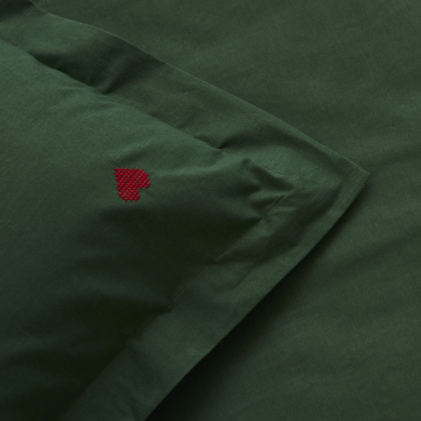 Karaca Home Amour Mio %100 Pamuk Çift Kişilik Nakışlı Nevresim Takımı Koyu Yeşil