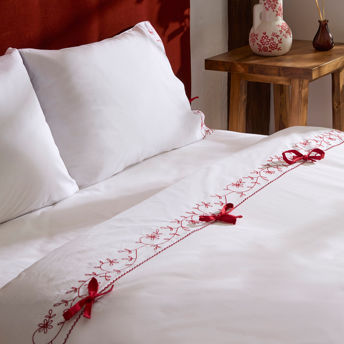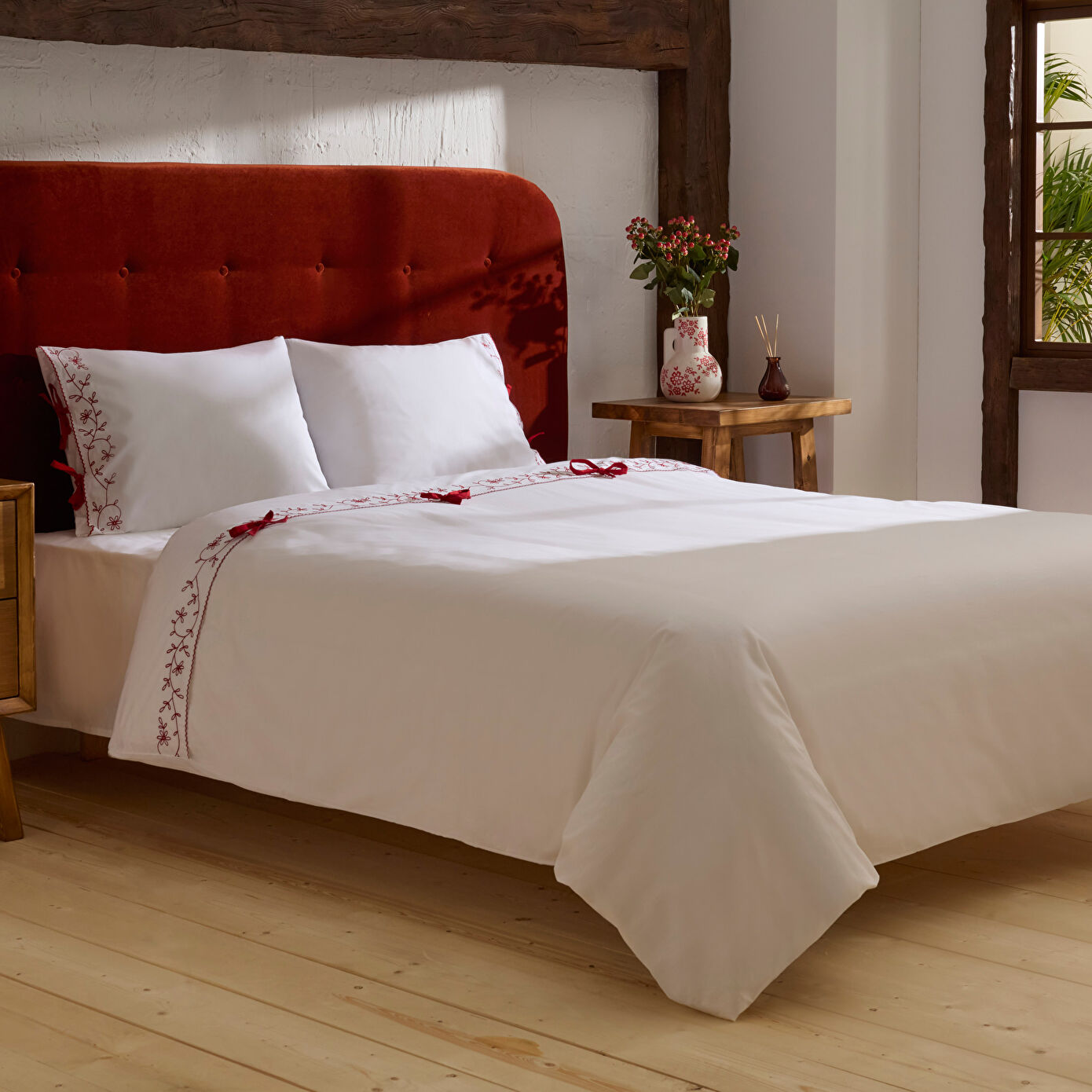 Karaca Home Calia %100 Pamuk Nakışlı Çift Kişilik Nevresim Takımı Beyaz