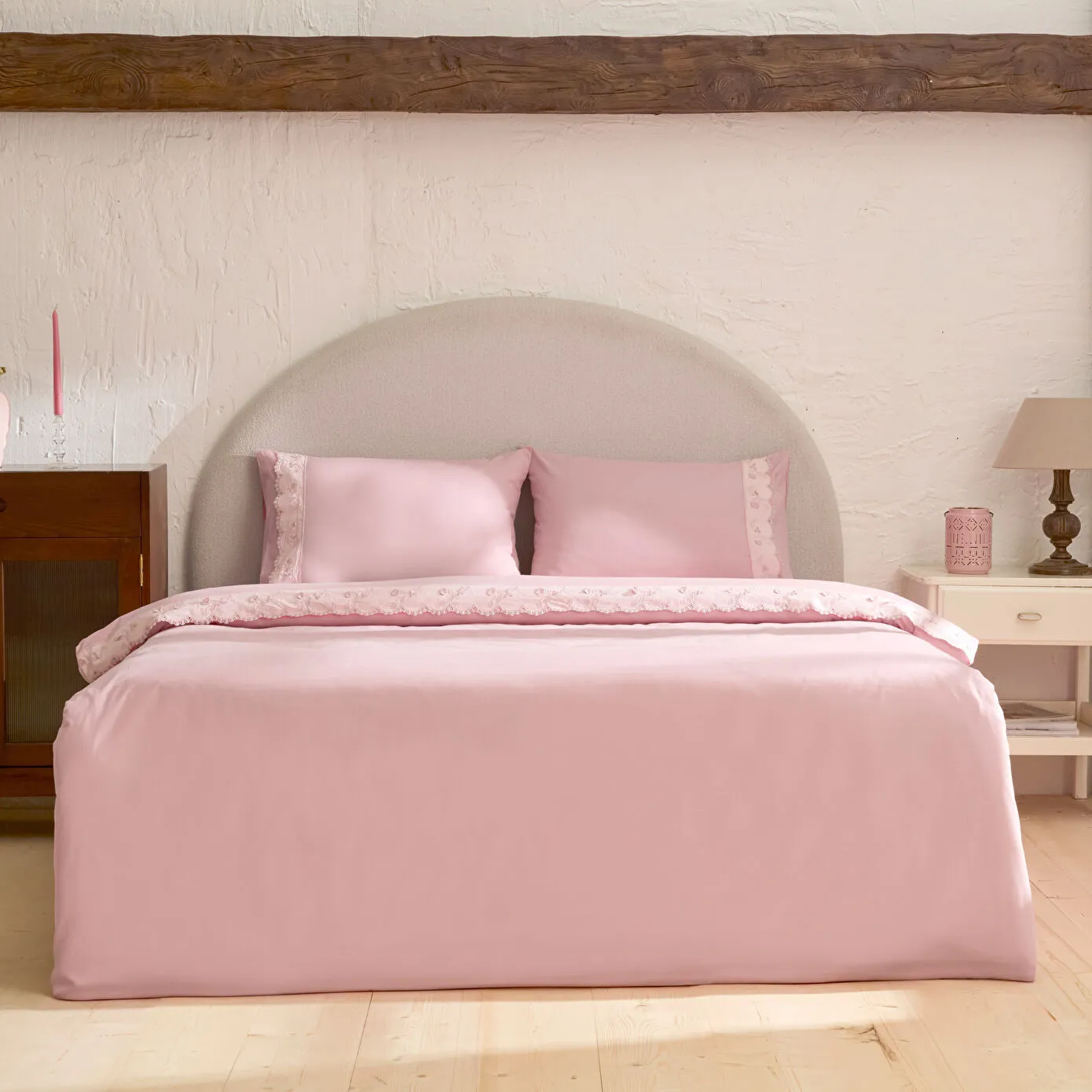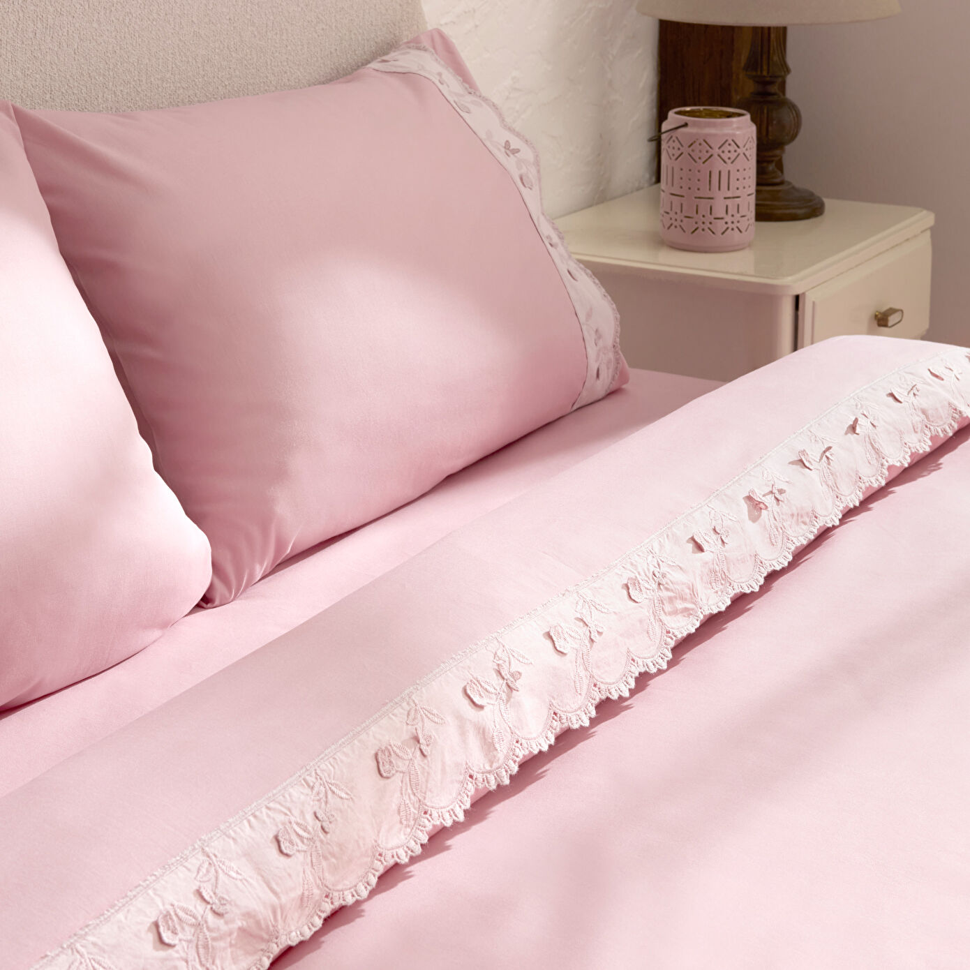 Karaca Home Delvyn %100 Pamuk Çift Kişilik Nevresim Takımı Pudra