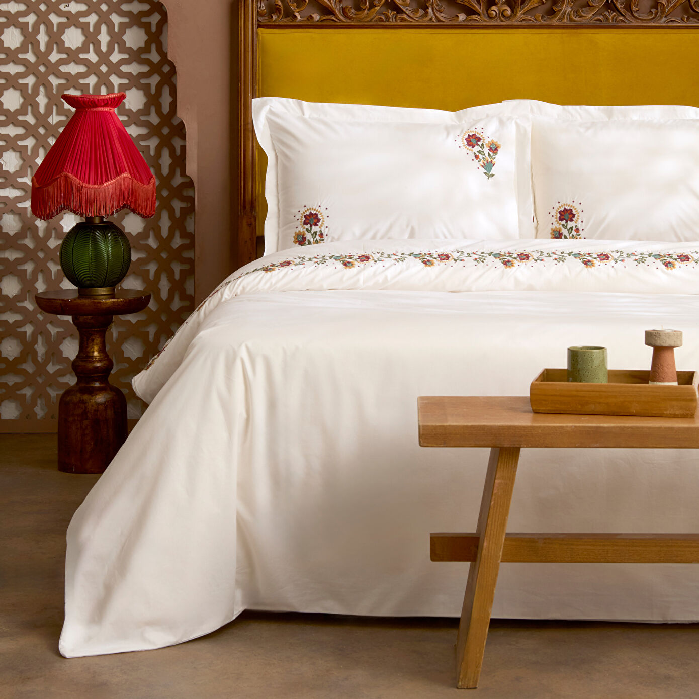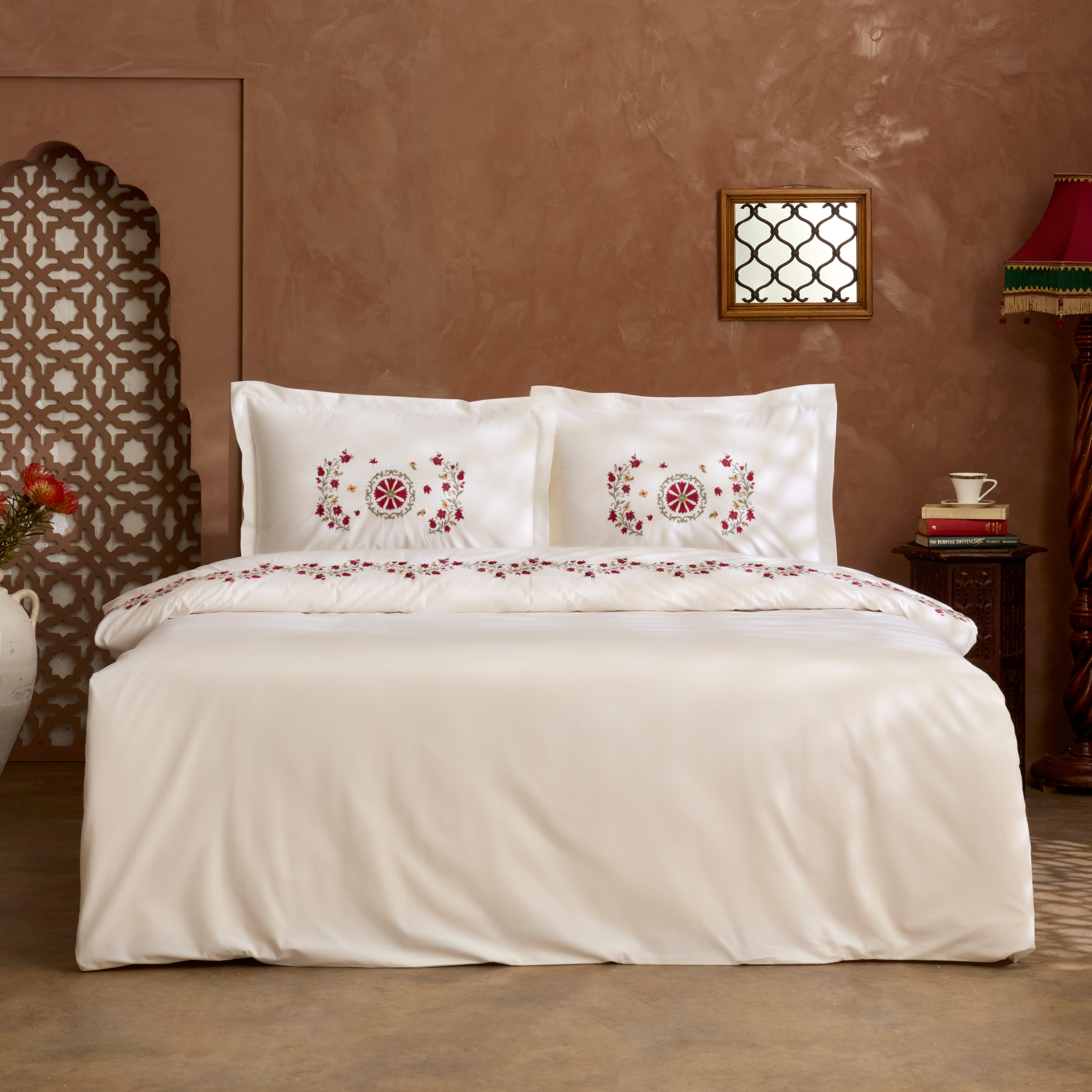 Karaca Home Dornel %100 Pamuk Nakışlı Çift Kişilik Nevresim Takımı Beyaz