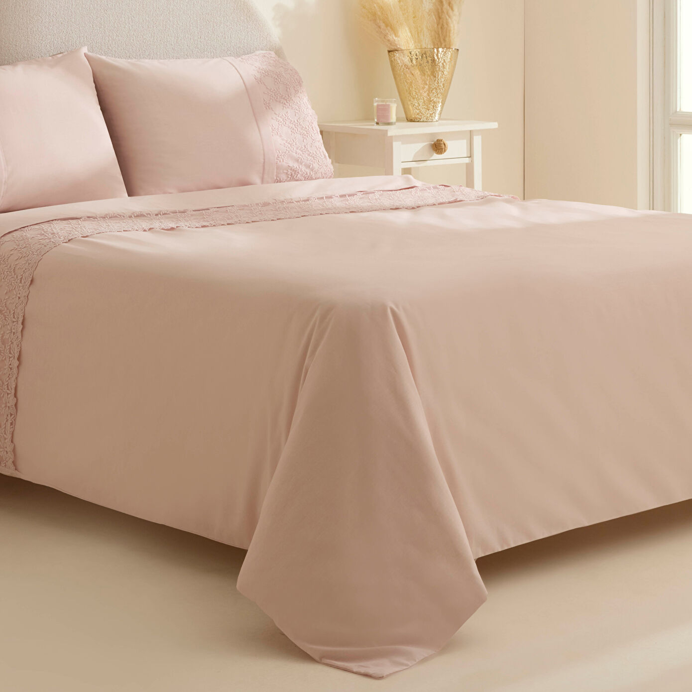 Karaca Home Elarıa Dantelli Çift Kişilik Nevresim Takımı Pudra