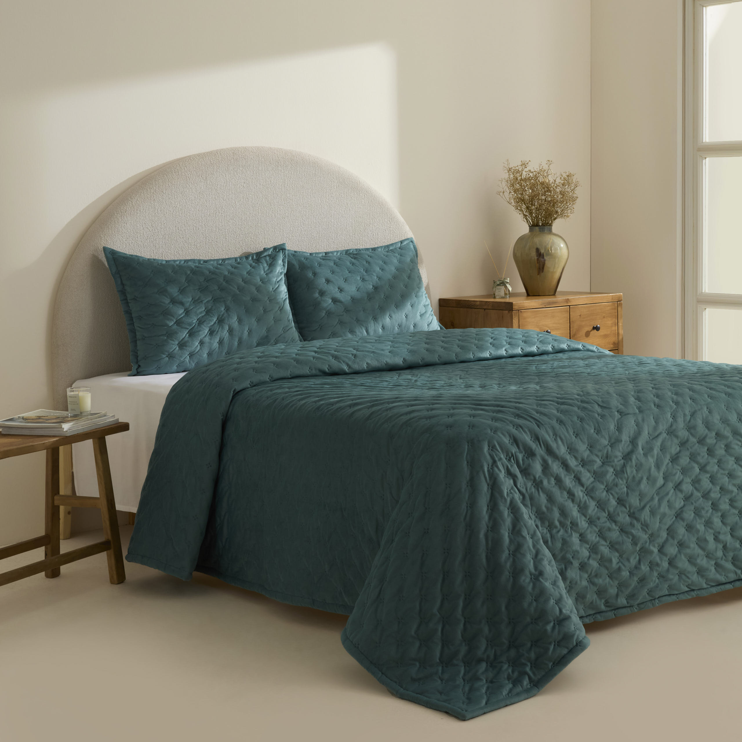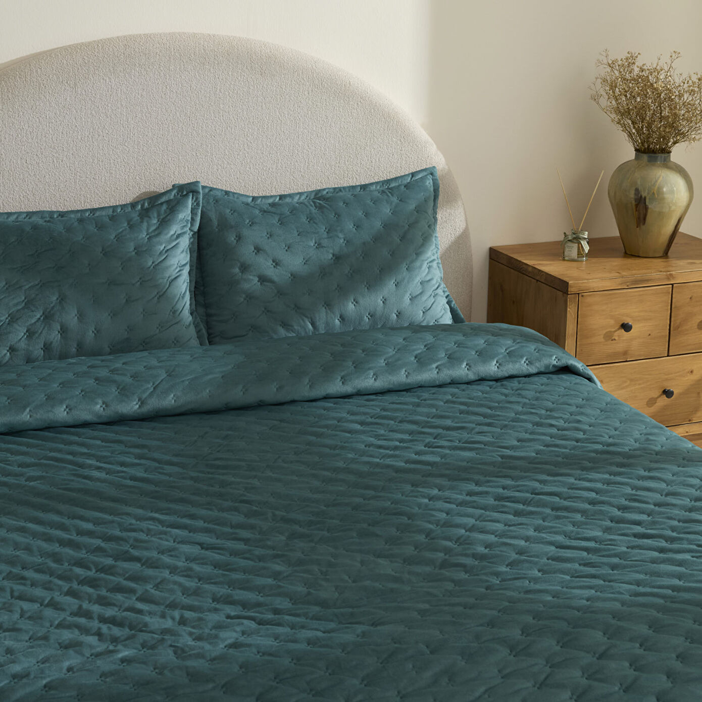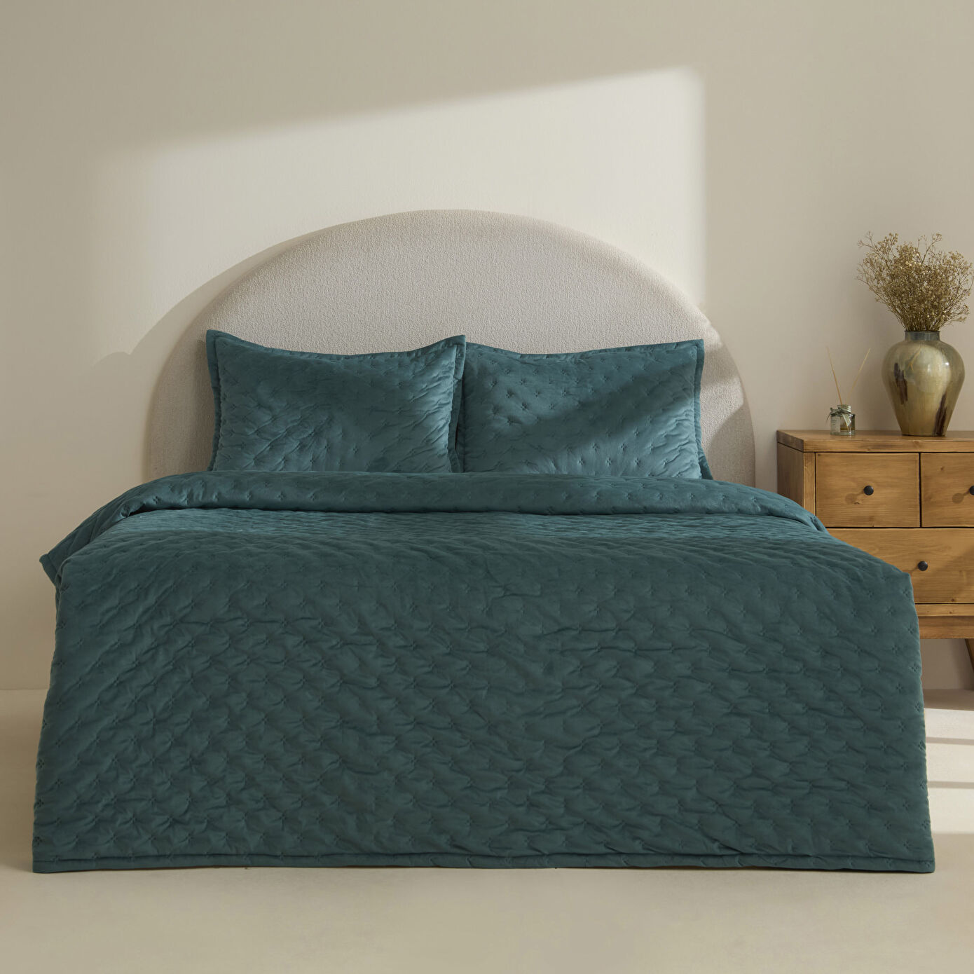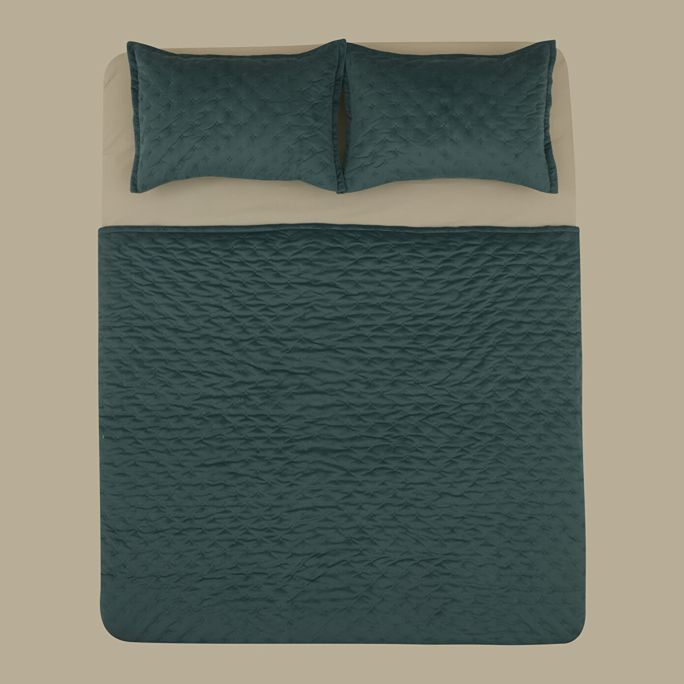 Karaca Home Granel Çift Kişilik Kadife Yatak Örtüsü Petrol