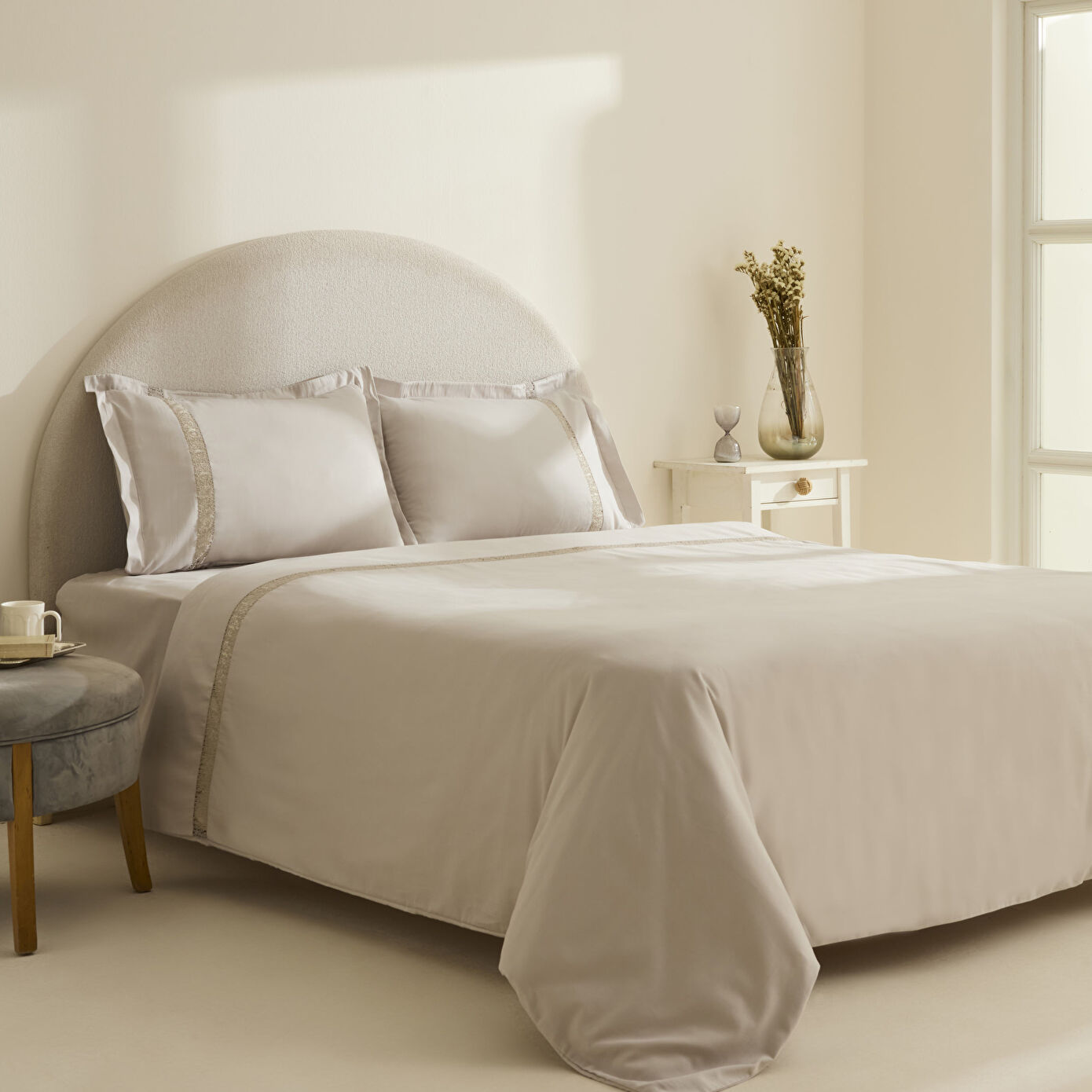 Karaca Home Lumi %100 Pamuk Saten Çift Kişilik Saten Nevresim Takımı Taş