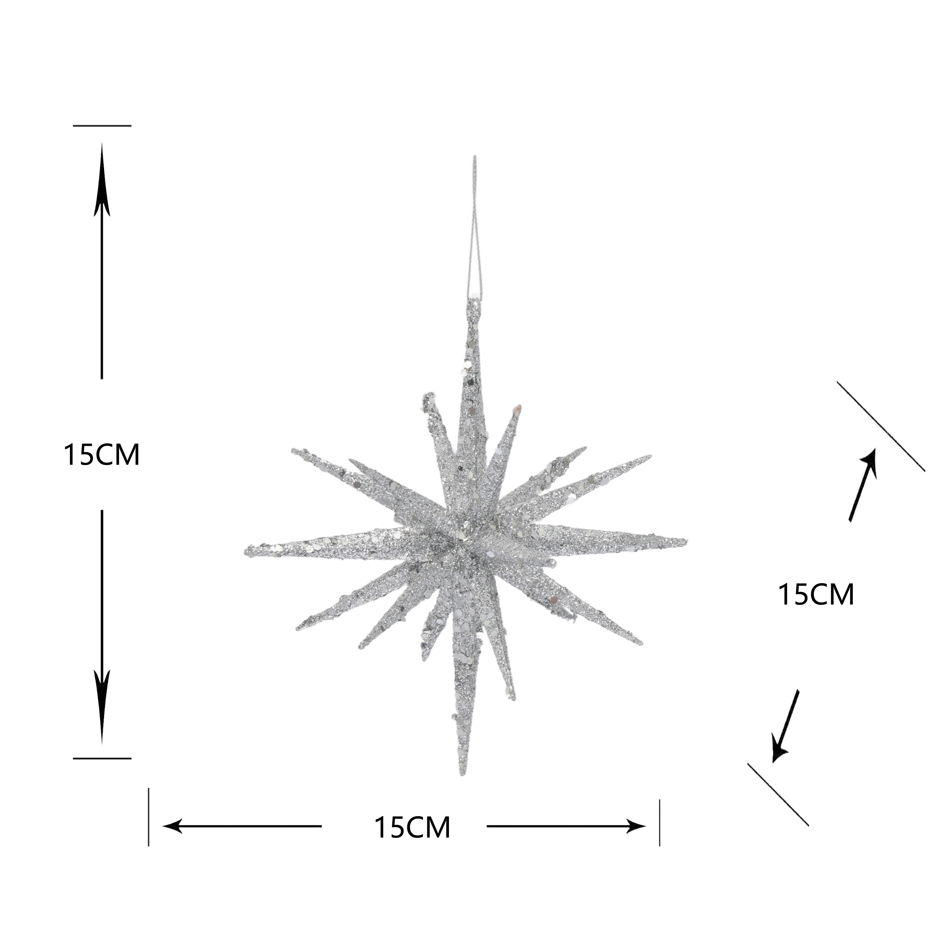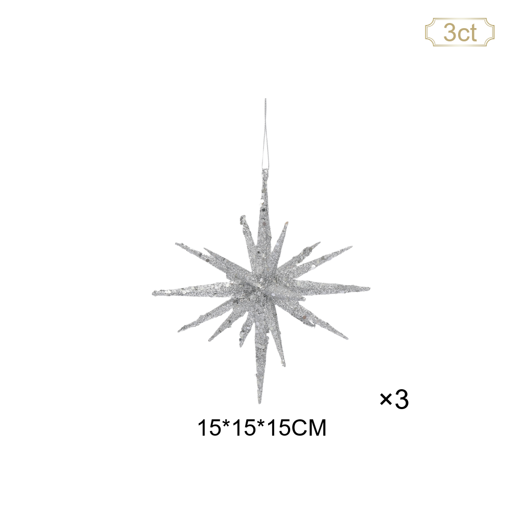 Karaca Home New Year Yılbaşı Glitter Star 3 Adet Ağaç Süsü Seti Silver 15x15x15 cm