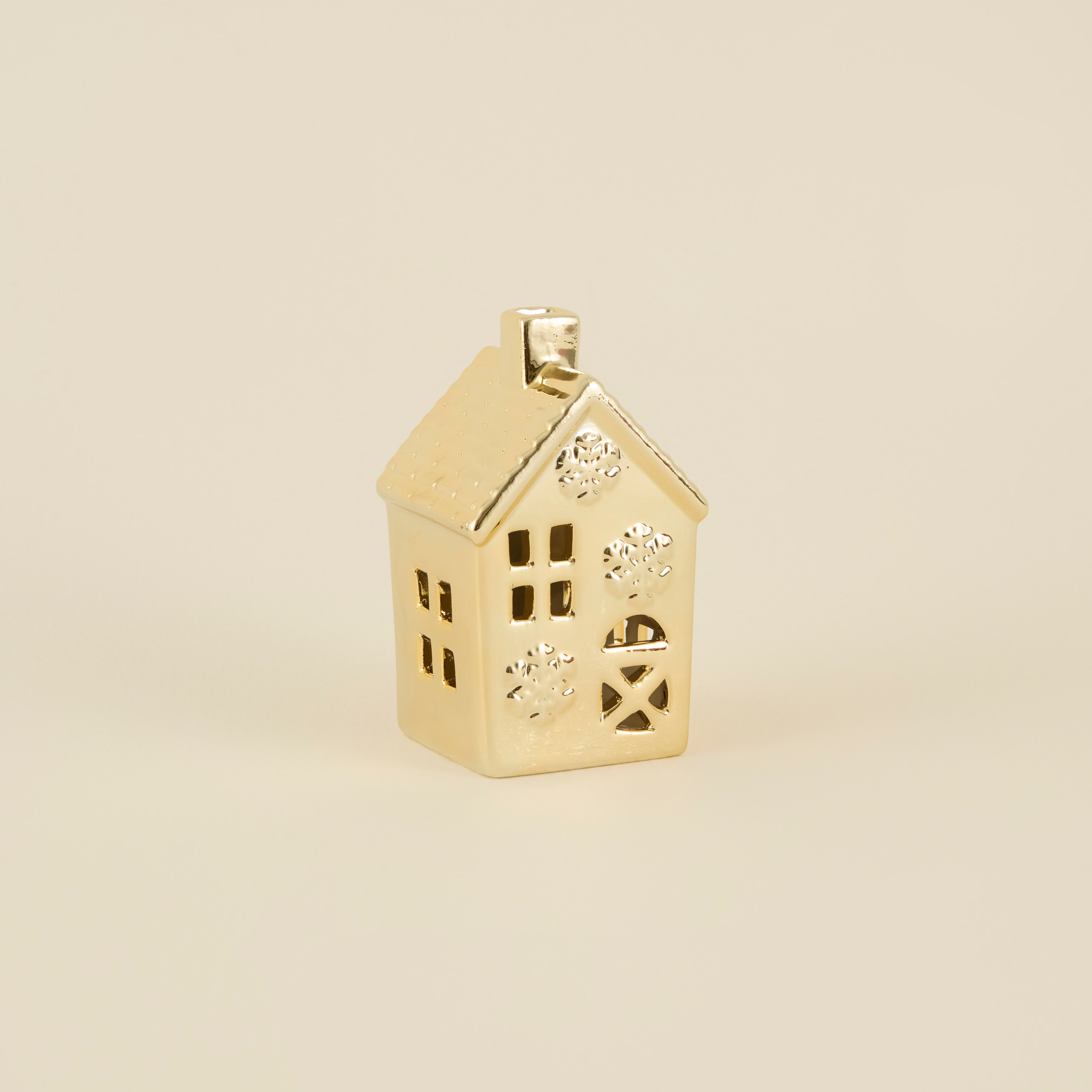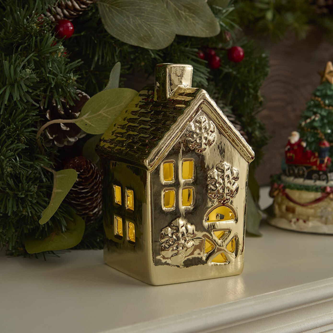 Karaca Home New Year Yılbaşı Gold House Ledli Dekoratif Obje 8,5 x 8,3 x 14,4 cm