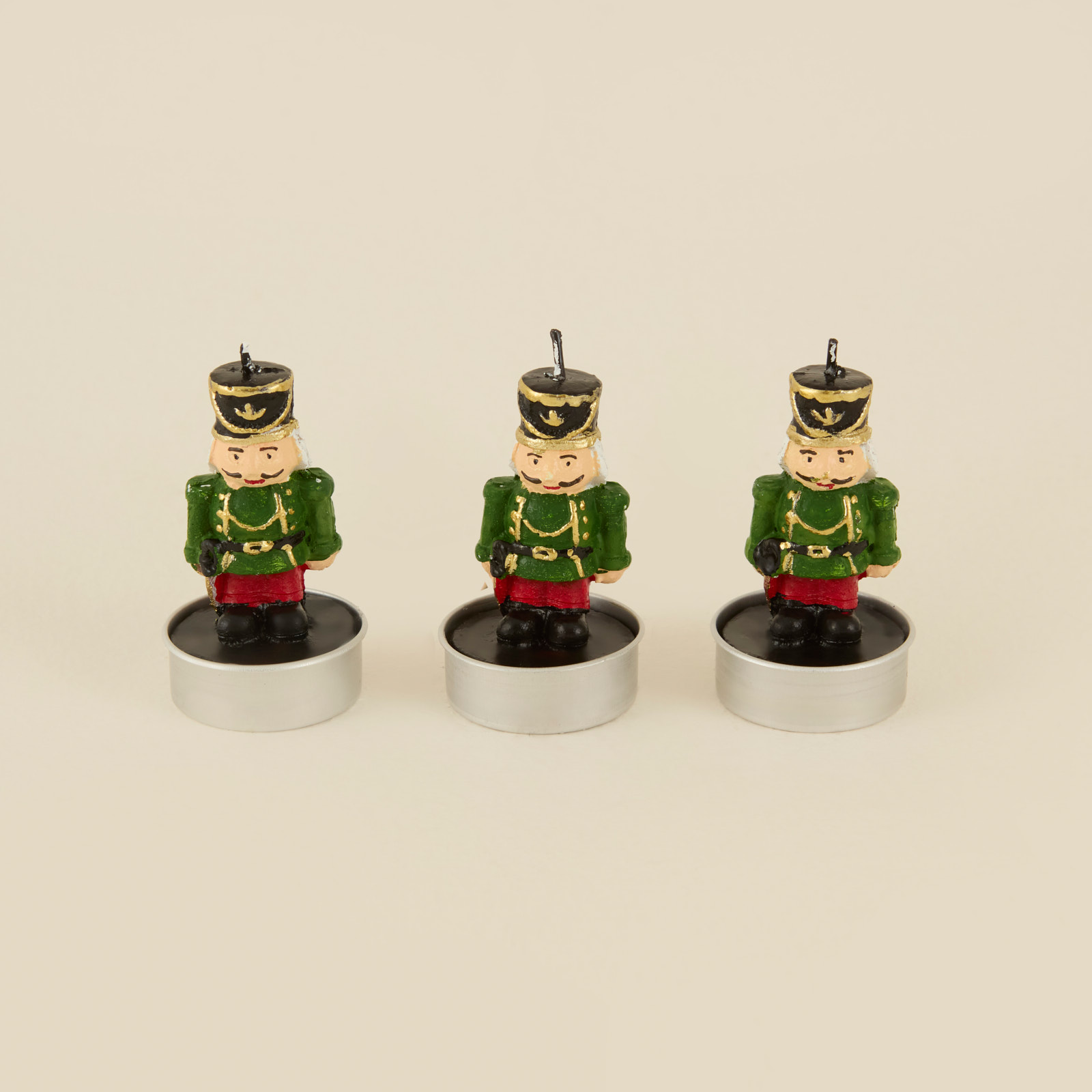 Karaca Home New Year Yılbaşı Nutcracker 3lü Tealight Mum Yeşil 11,5x5x7 cm