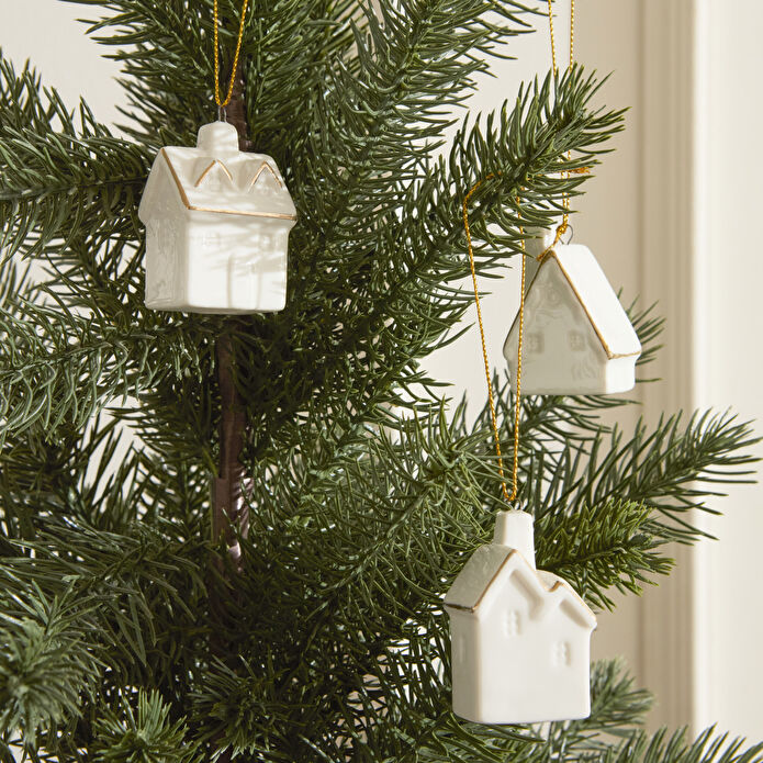 Karaca Home New Year Yılbaşı White Houses 3 Parça Ağaç Süsü Seti