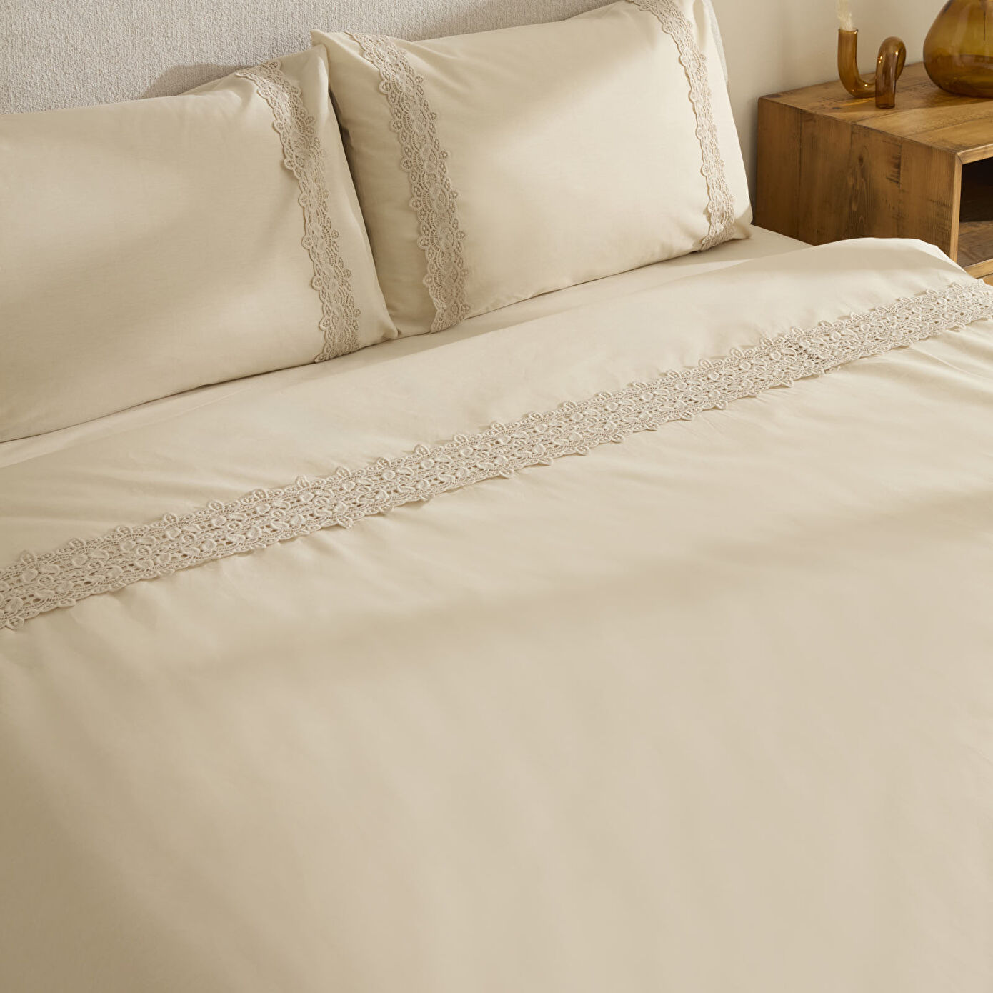 Karaca Home Nuvia Güpürlü Çift Kişilik Nevresin Takımı Bej