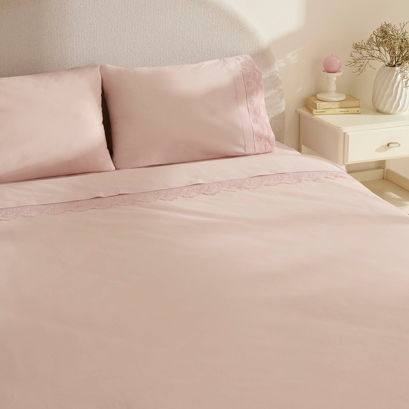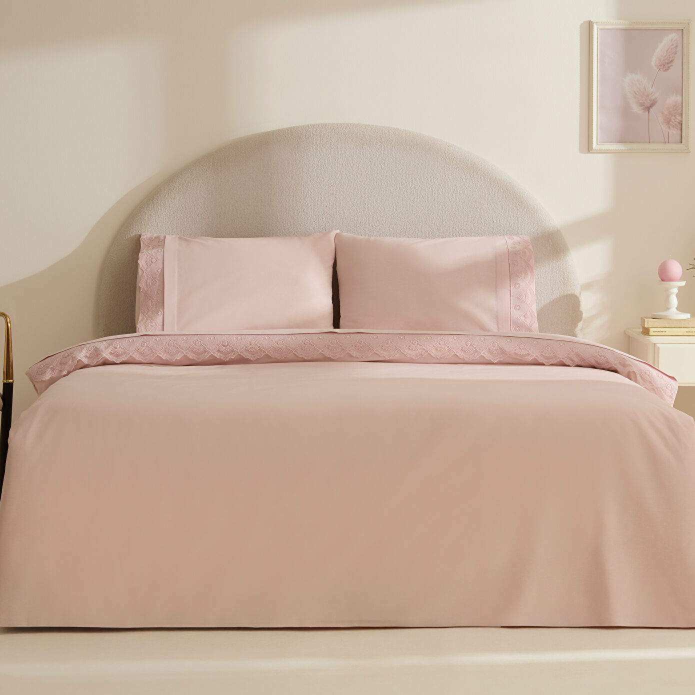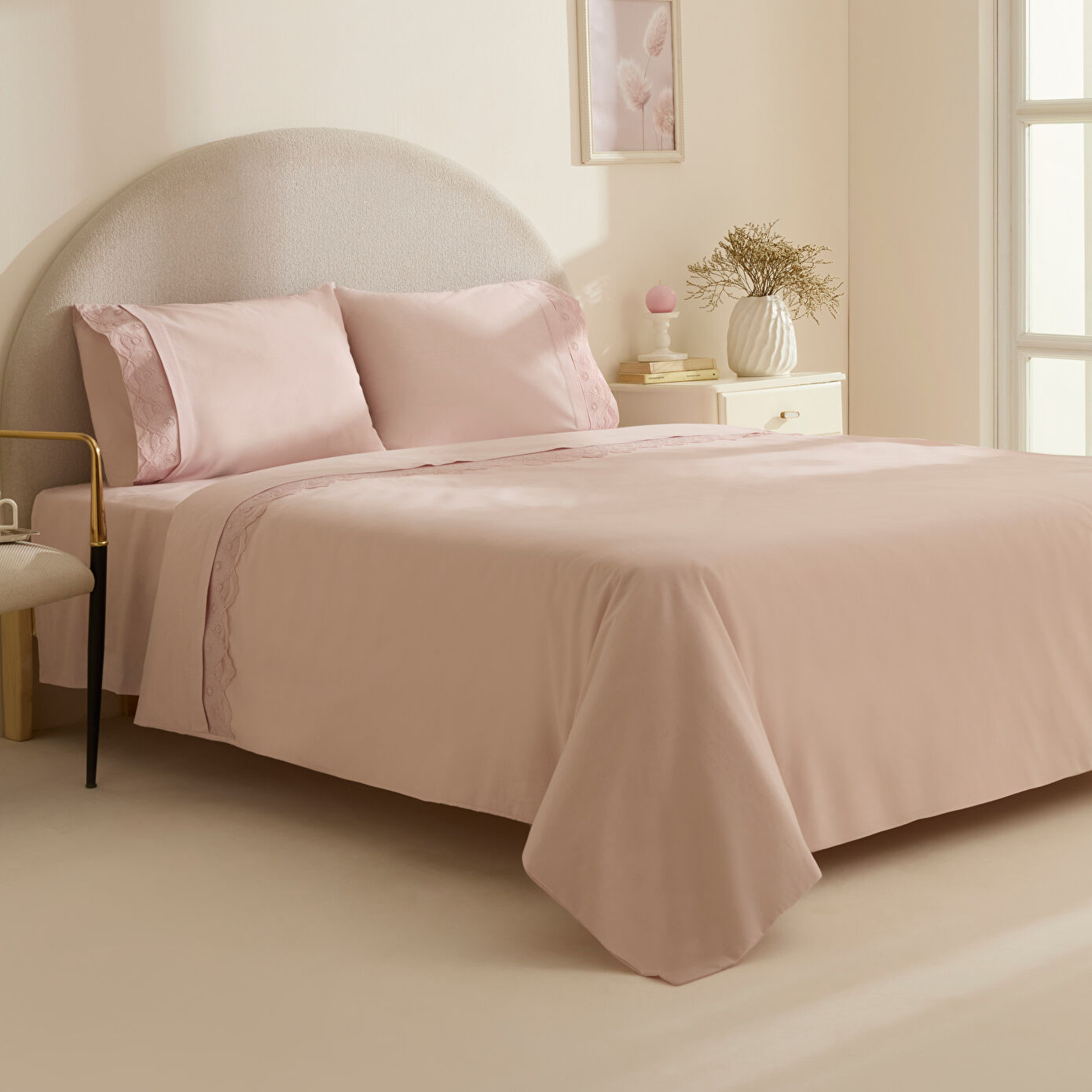 Karaca Home Teora %100 Pamuk Dantelli Çift Kişilik Nevresım Takımı Pudra