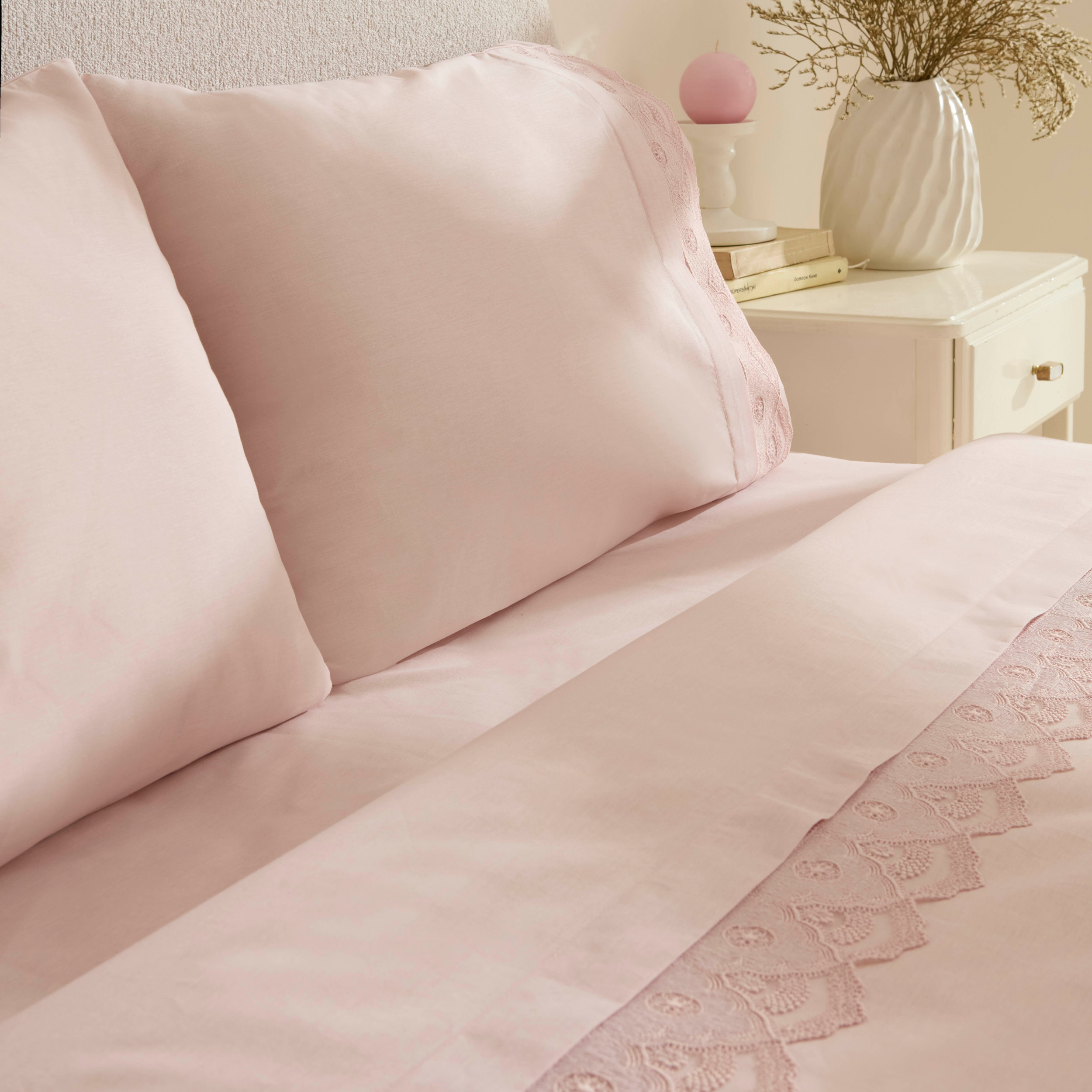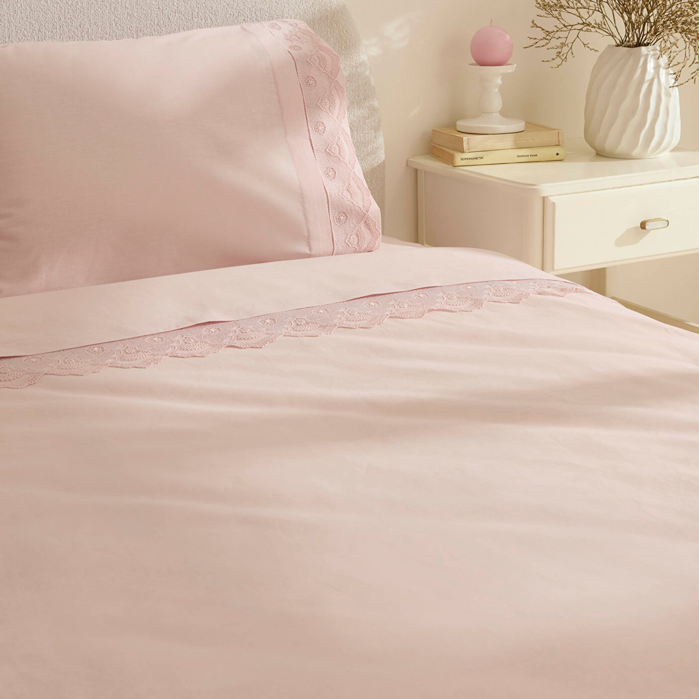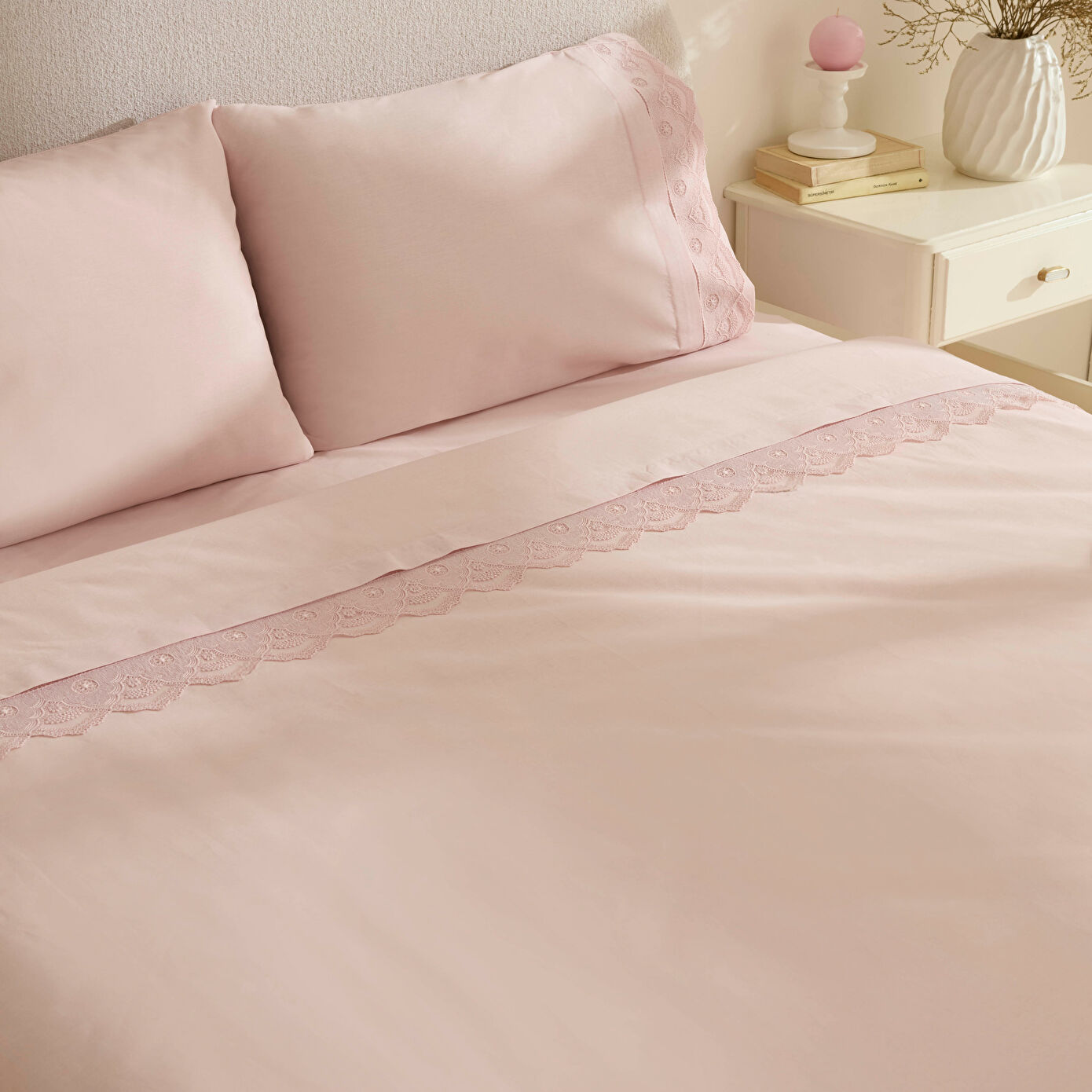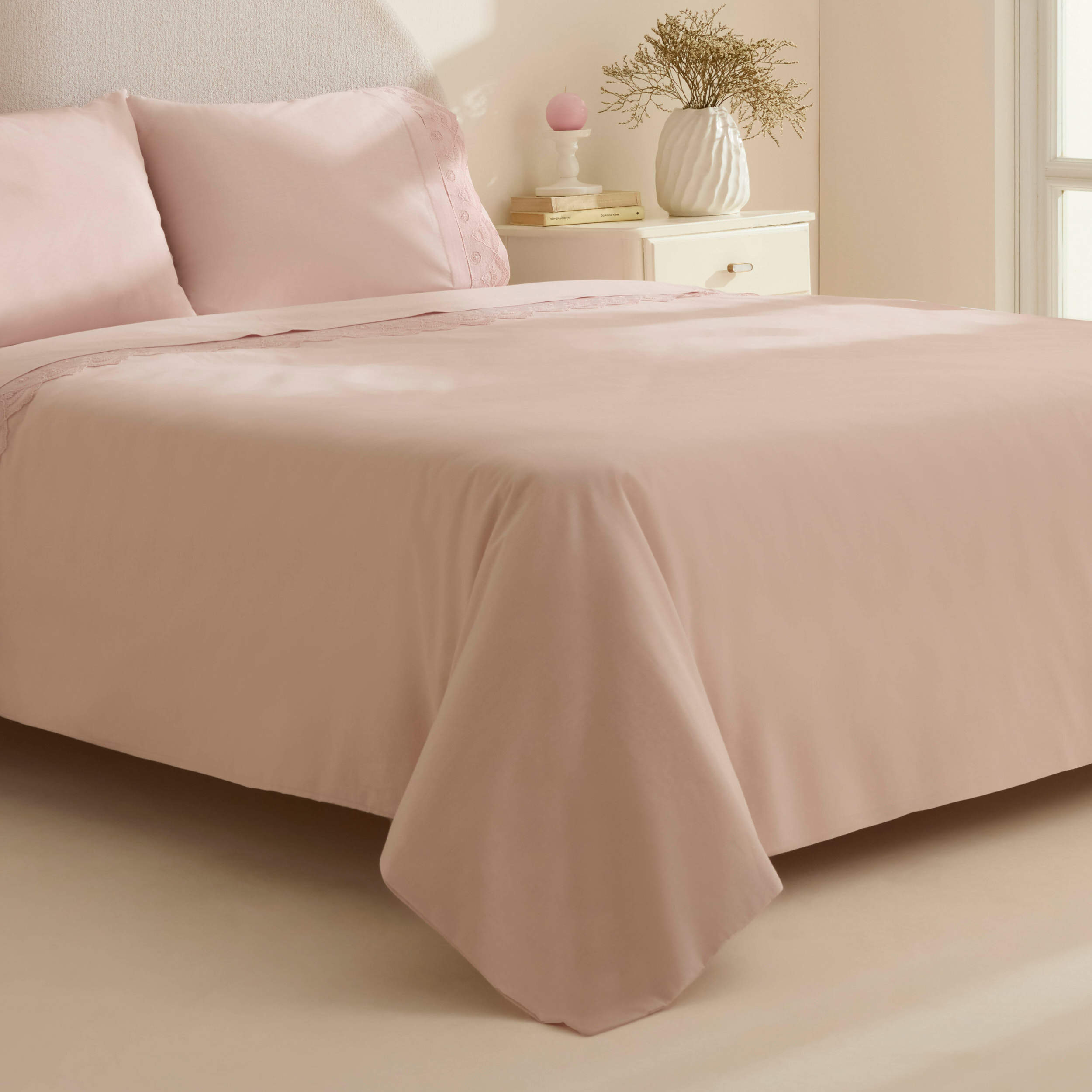 Karaca Home Teora %100 Pamuk Dantelli Çift Kişilik Nevresım Takımı Pudra