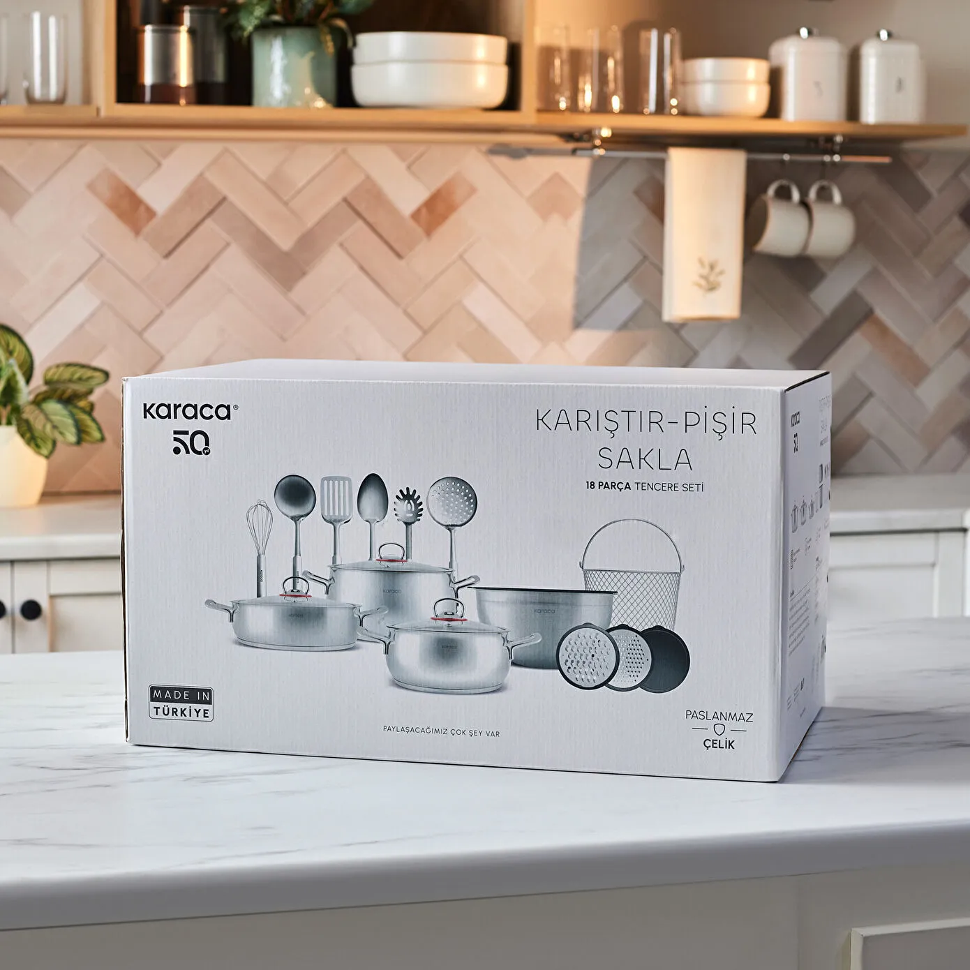 Karaca Karıştır-Pişir-Sakla 18 Parça Çelik Tencere Seti