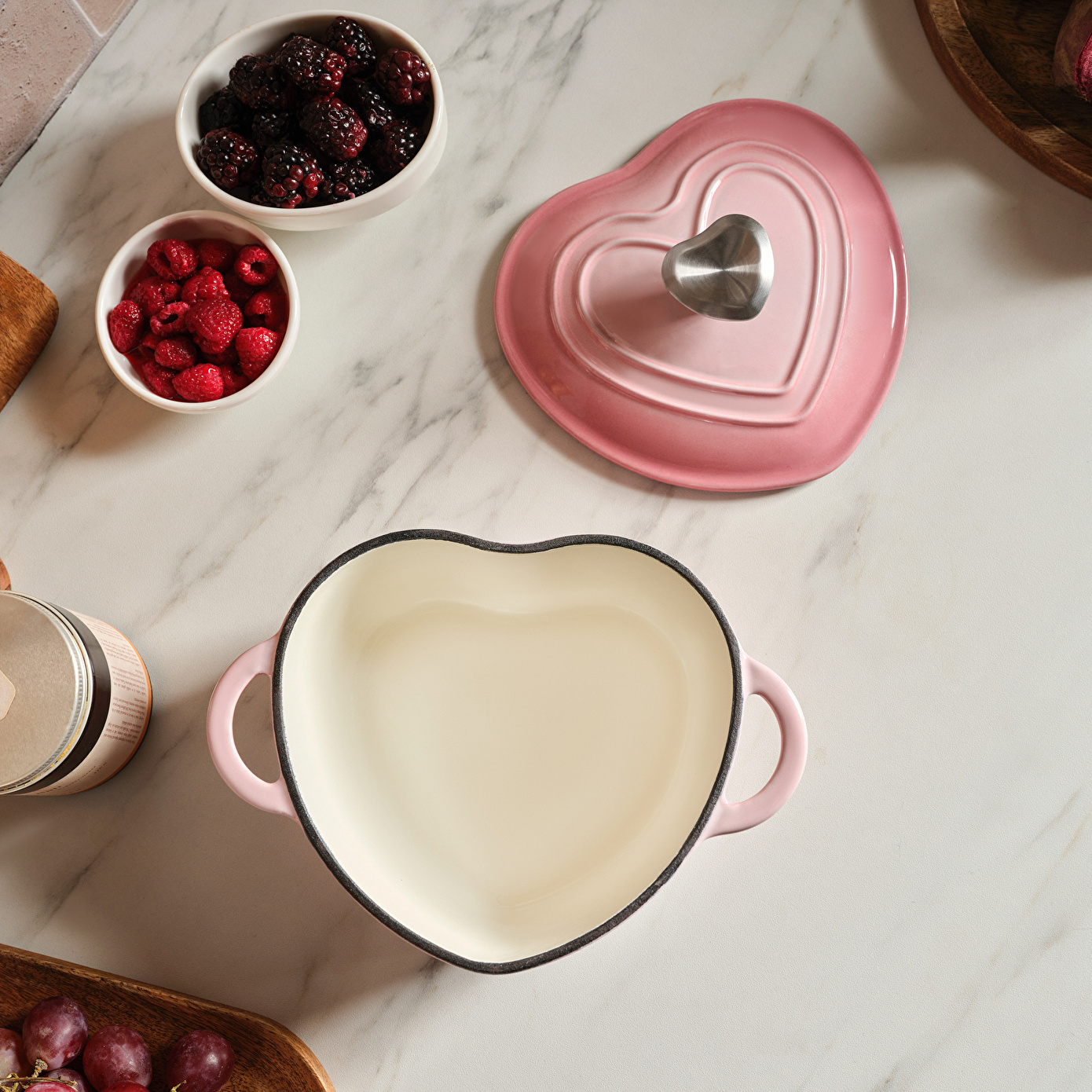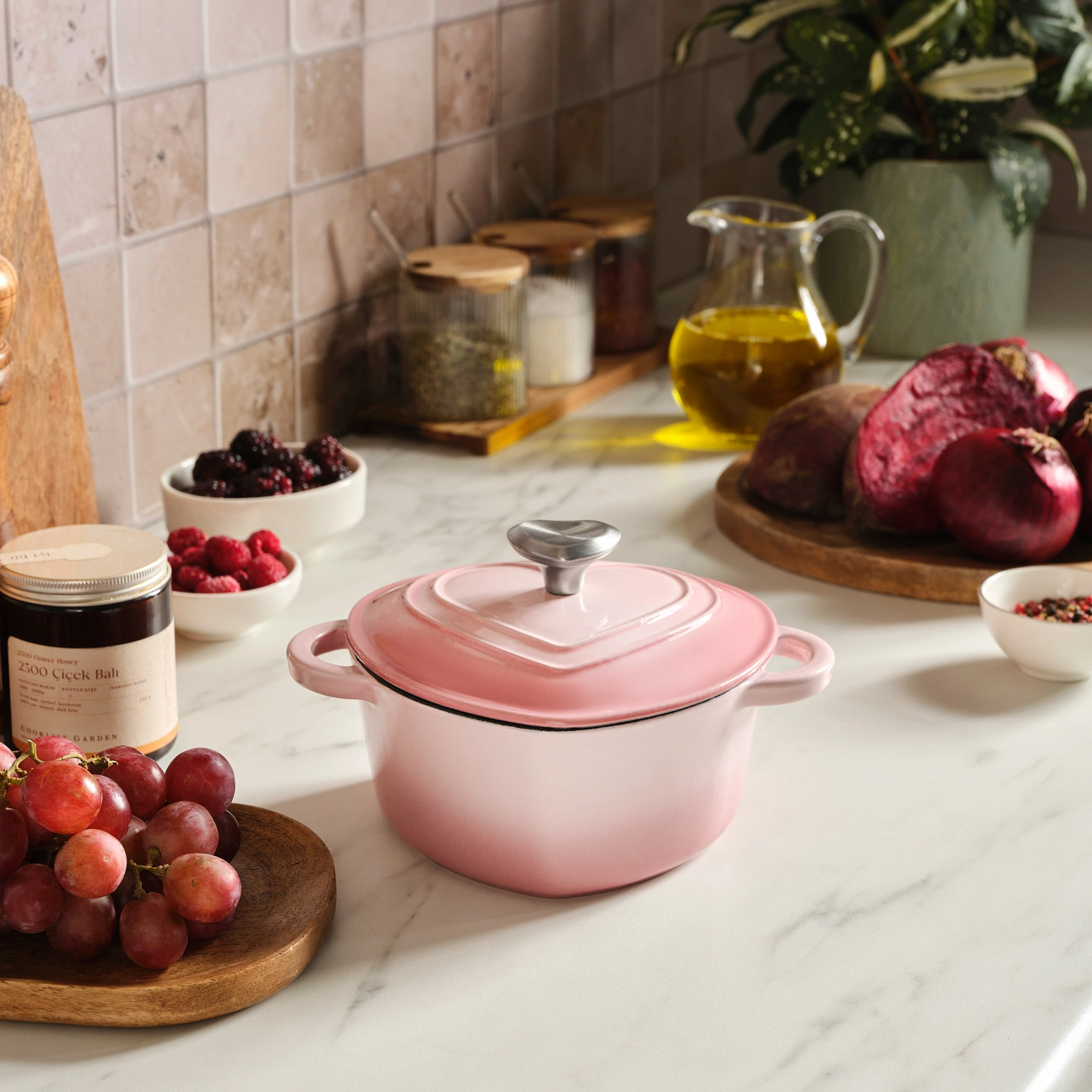 Karaca Love Emayeli Demir Döküm Tencere Pembe 18 cm