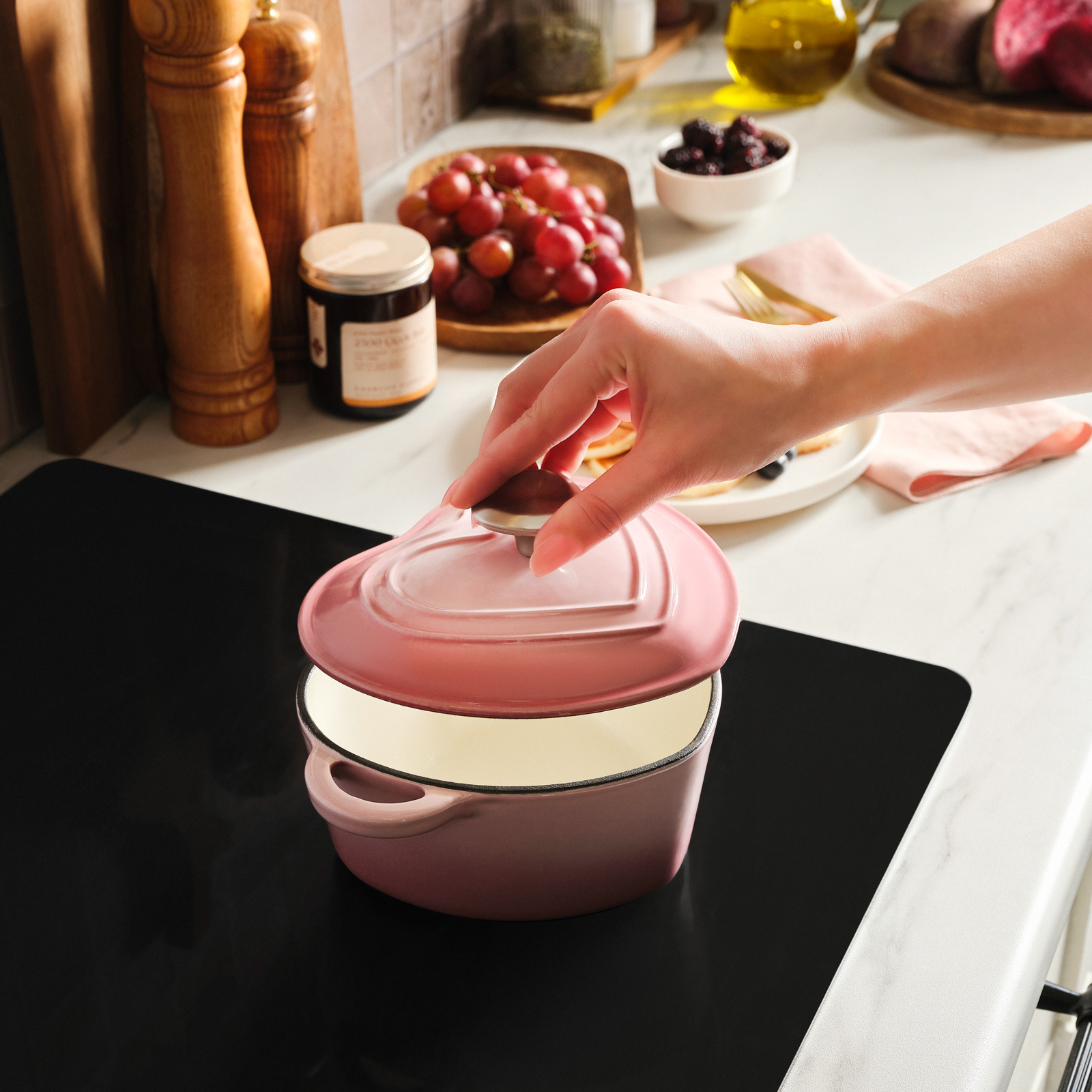 Modern mutfaklarda uyumluluk önemli bir kriter. İndüksiyon ocakta kullanılabilir olması sayesinde döküm tencere, farklı ısı kaynaklarında güvenle performans gösterir. Aynı şekilde fırında kullanılabilir yapısı, tarif planlamasını kolaylaştırır: ocakta başlat, fırında bitir yaklaşımıyla daha kontrollü pişirme sağlayabilirsiniz. Günlük kullanımda pratiklik arayanlar için bulaşık makinesinde yıkanılabilir olması da büyük konfor sunar. Böylece yoğun günlerde bile döküm tencerenizi hızlıca temizleyip bir sonraki tarif için hazır hale getirebilirsiniz.