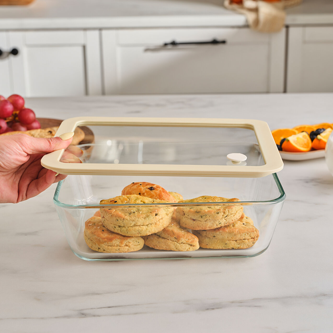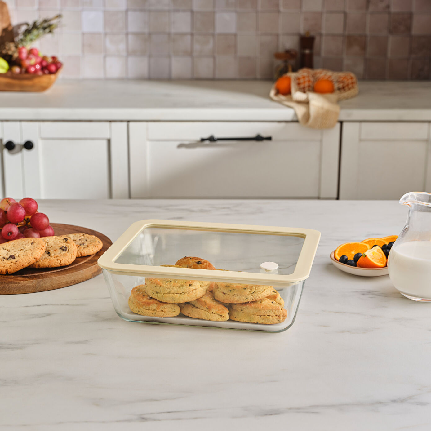Karaca Luna Cam Saklama Kabı Krem 2600 ml