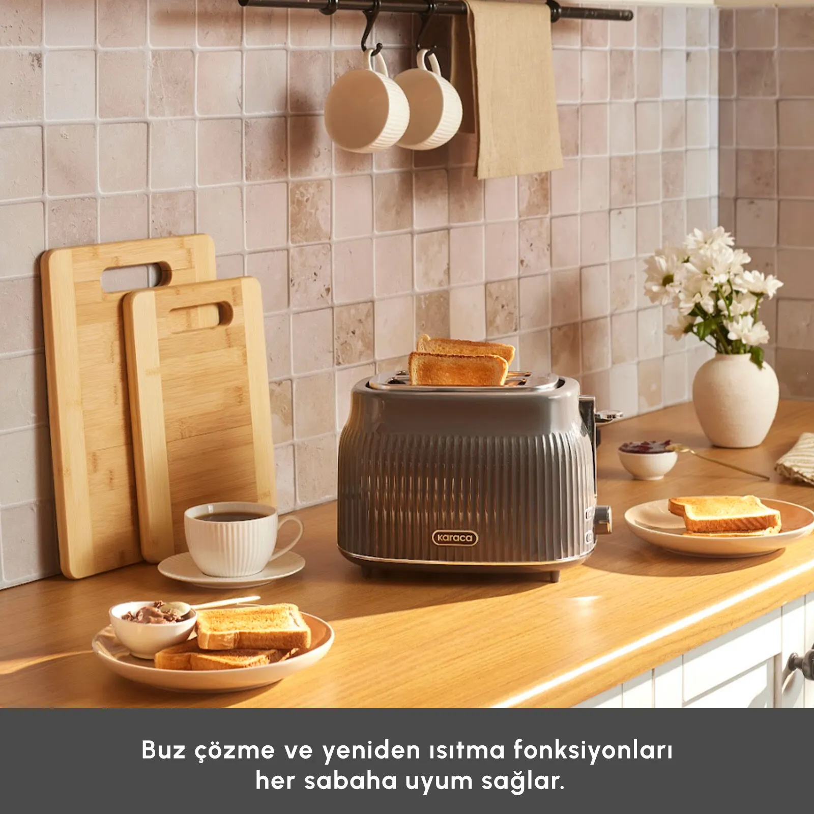 Karaca Massimo Ekmek Kızartma Makinesi, estetik detaylarıyla dikkat çekici bir tasarıma sahiptir.