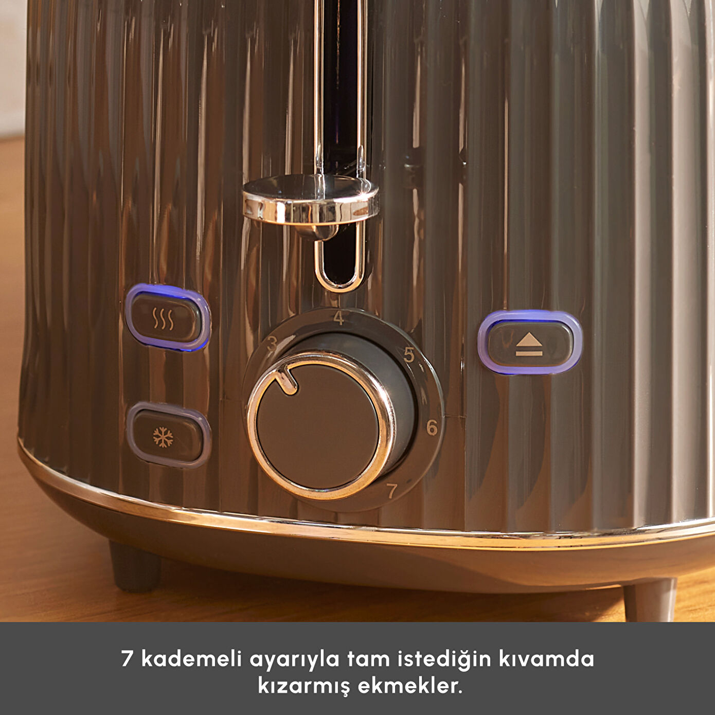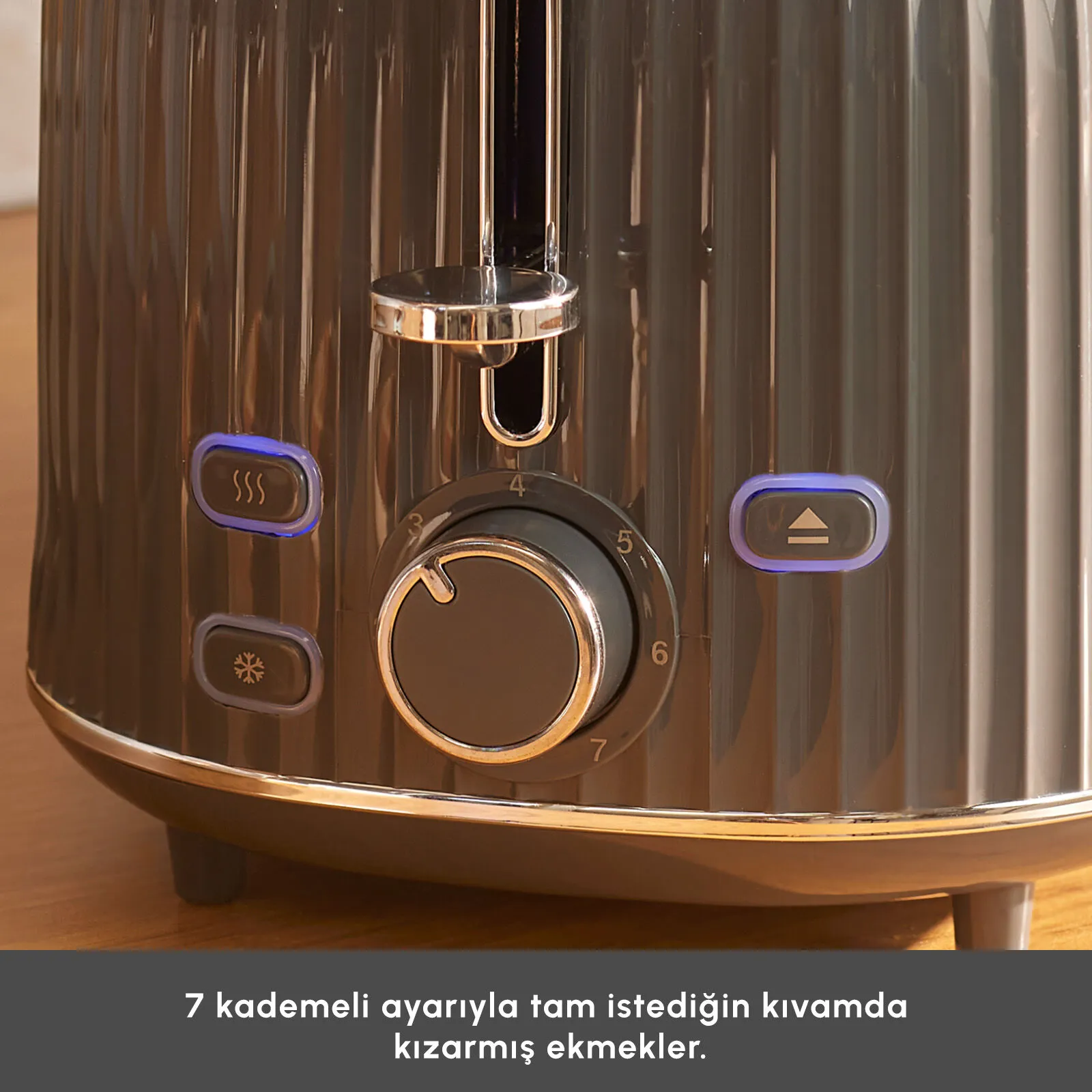 7 kademeli kızartma ayarı ile ekmeğin kızarma derecesini istediğiniz gibi ayarlayabilirsiniz.