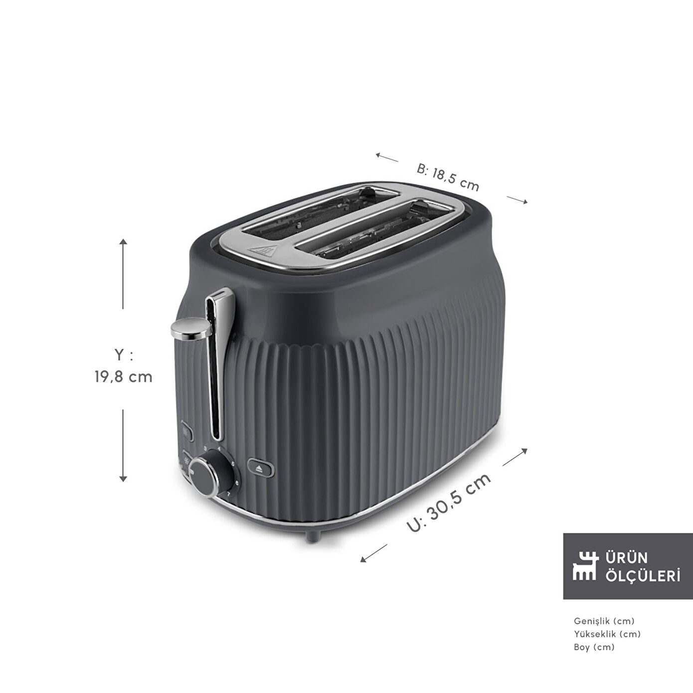 - Boy: 18,5cm, En: 30,5 cm, Yükseklik:19,8 cm