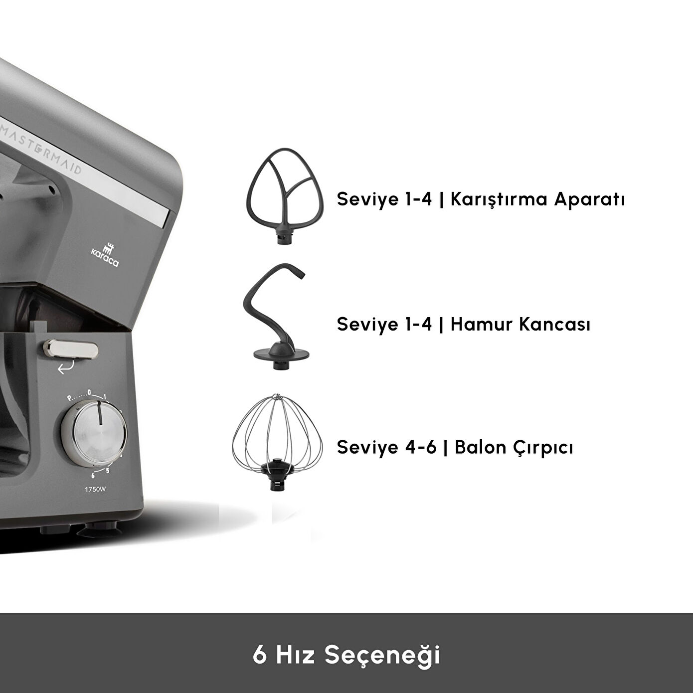 Karaca Mastermaid Chef Pro Çift Kollu Hamur Yoğurma Makinesi Galaxy Grey 1750W 5L