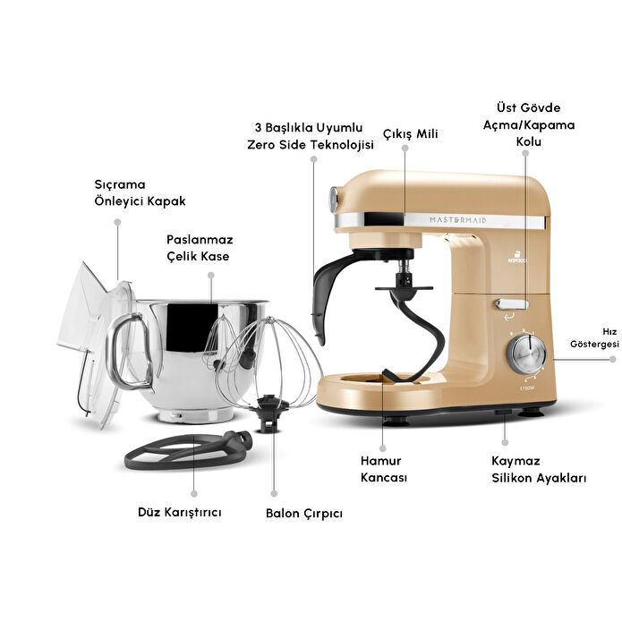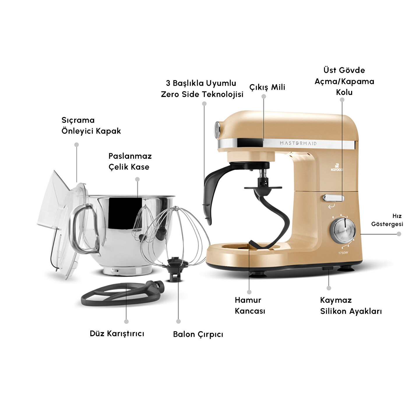 Karaca Mastermaid Chef Pro Çift Kollu Stand Mikser Mineral Gold 1750W