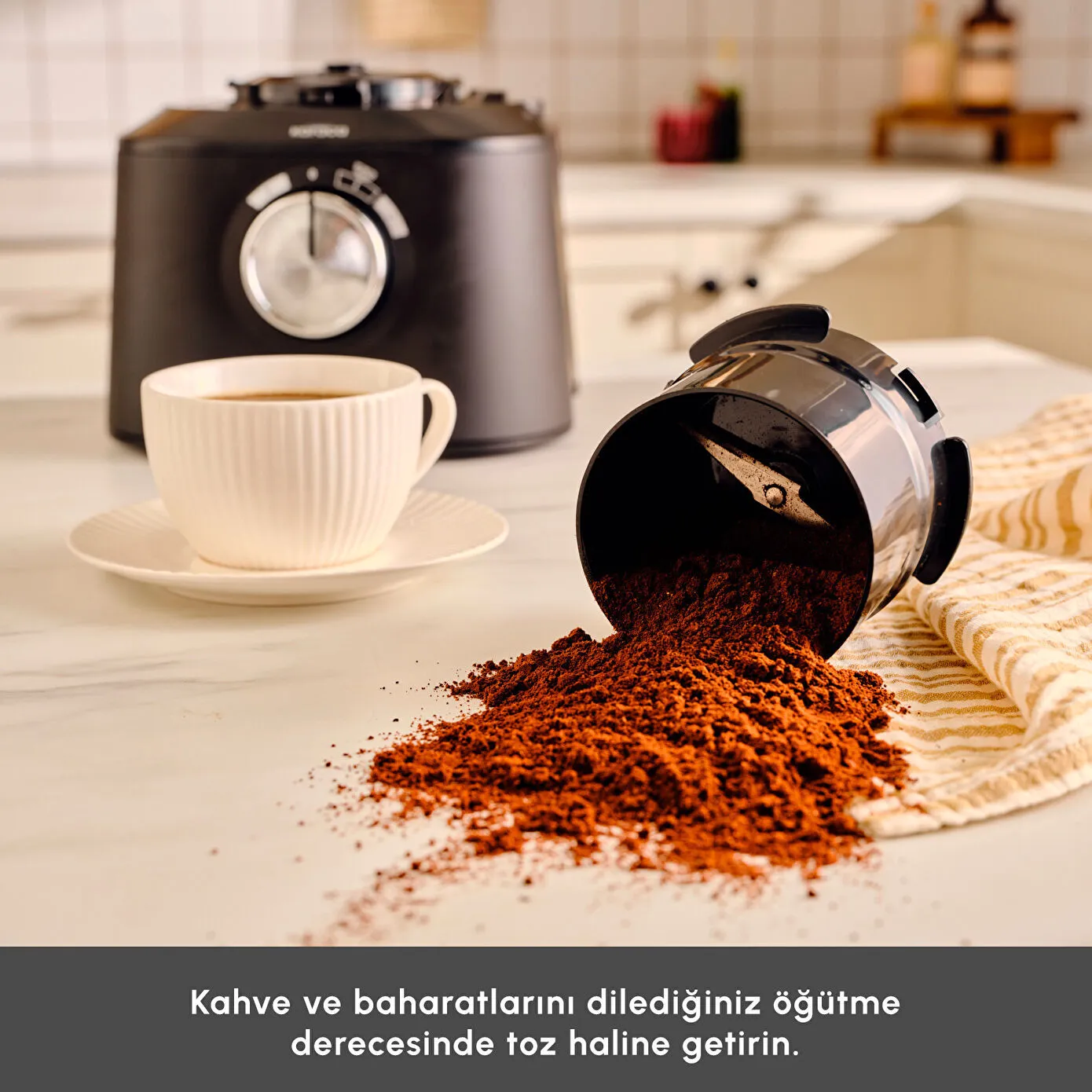 - Öğütücü aparatı ile kahve ve baharatları damak tadın ıza göre farklı seviyelerde çekebilirsiniz.